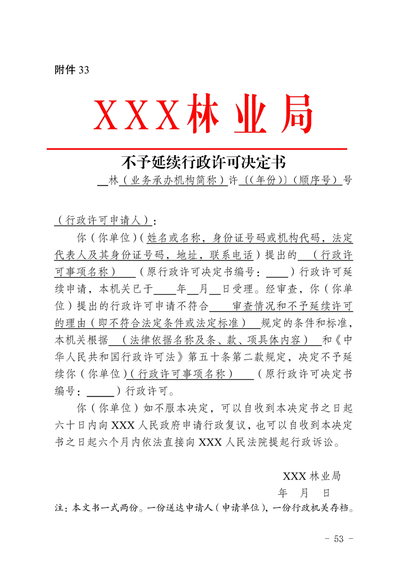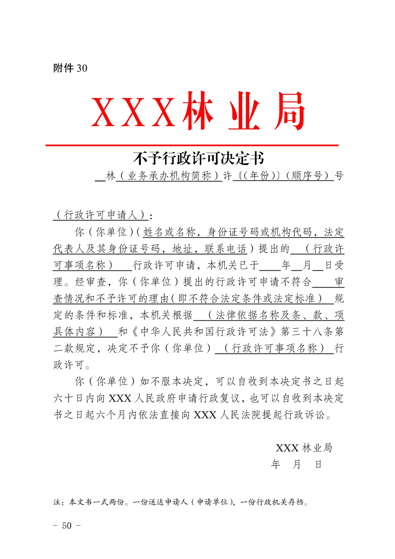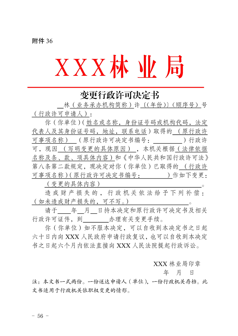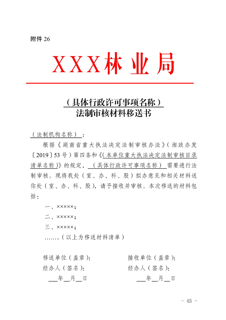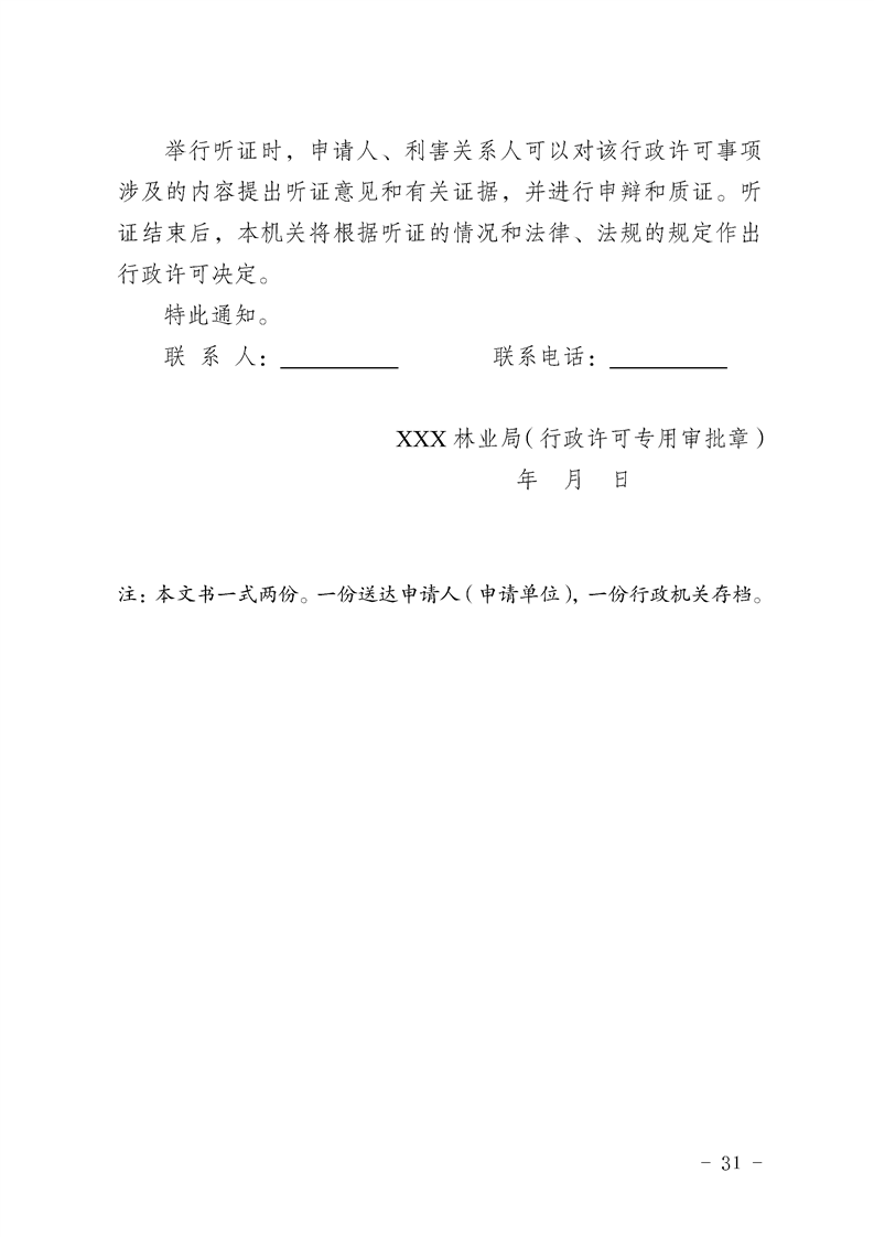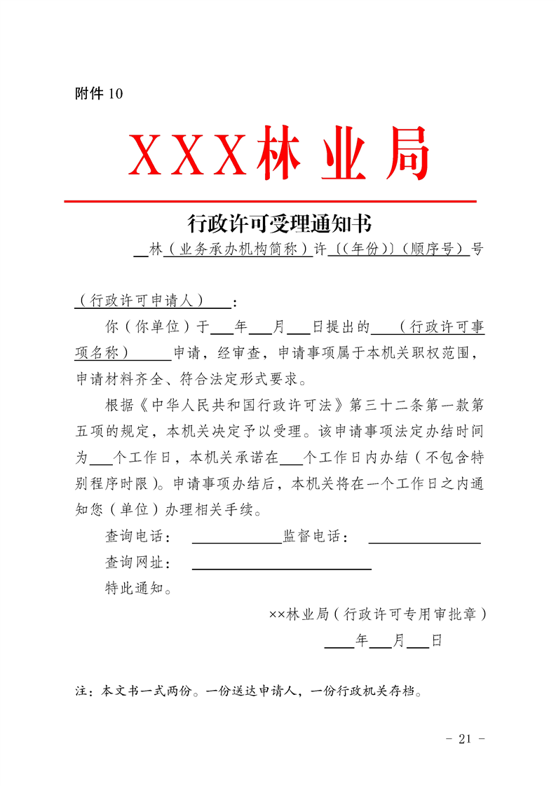湖南省林业局关于印发《湖南省林业行政许可文书格式范本》的通知