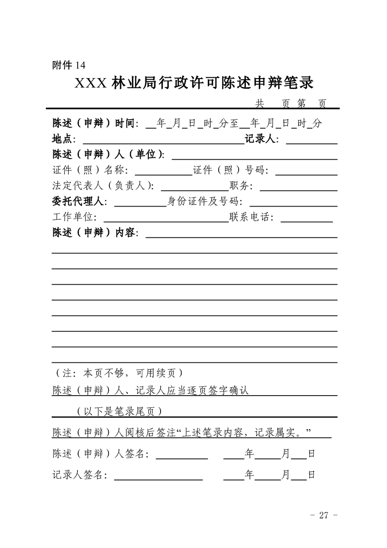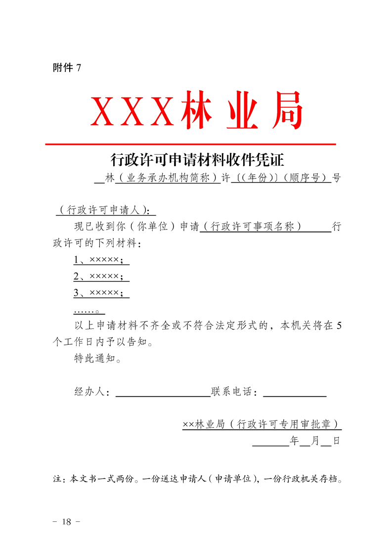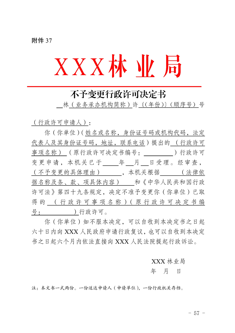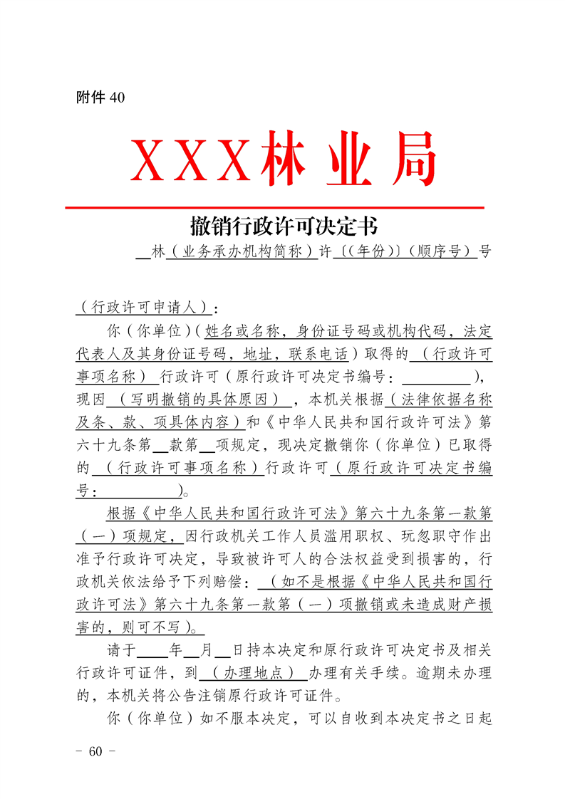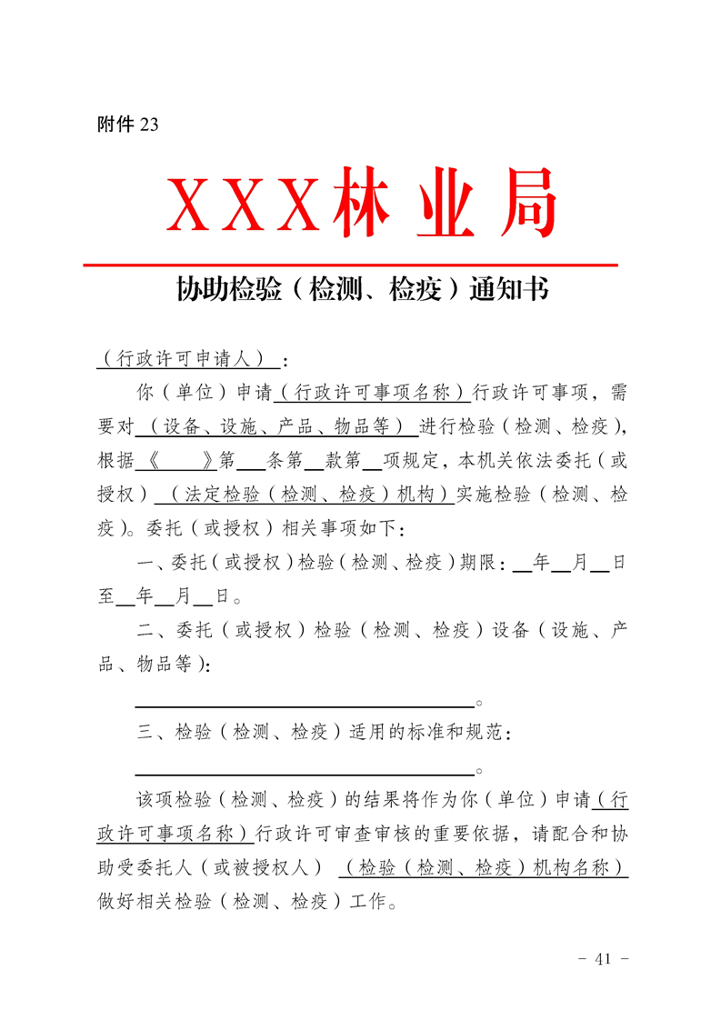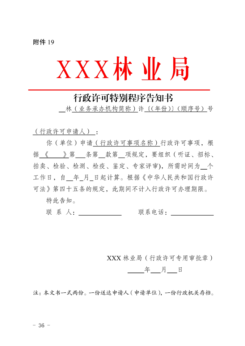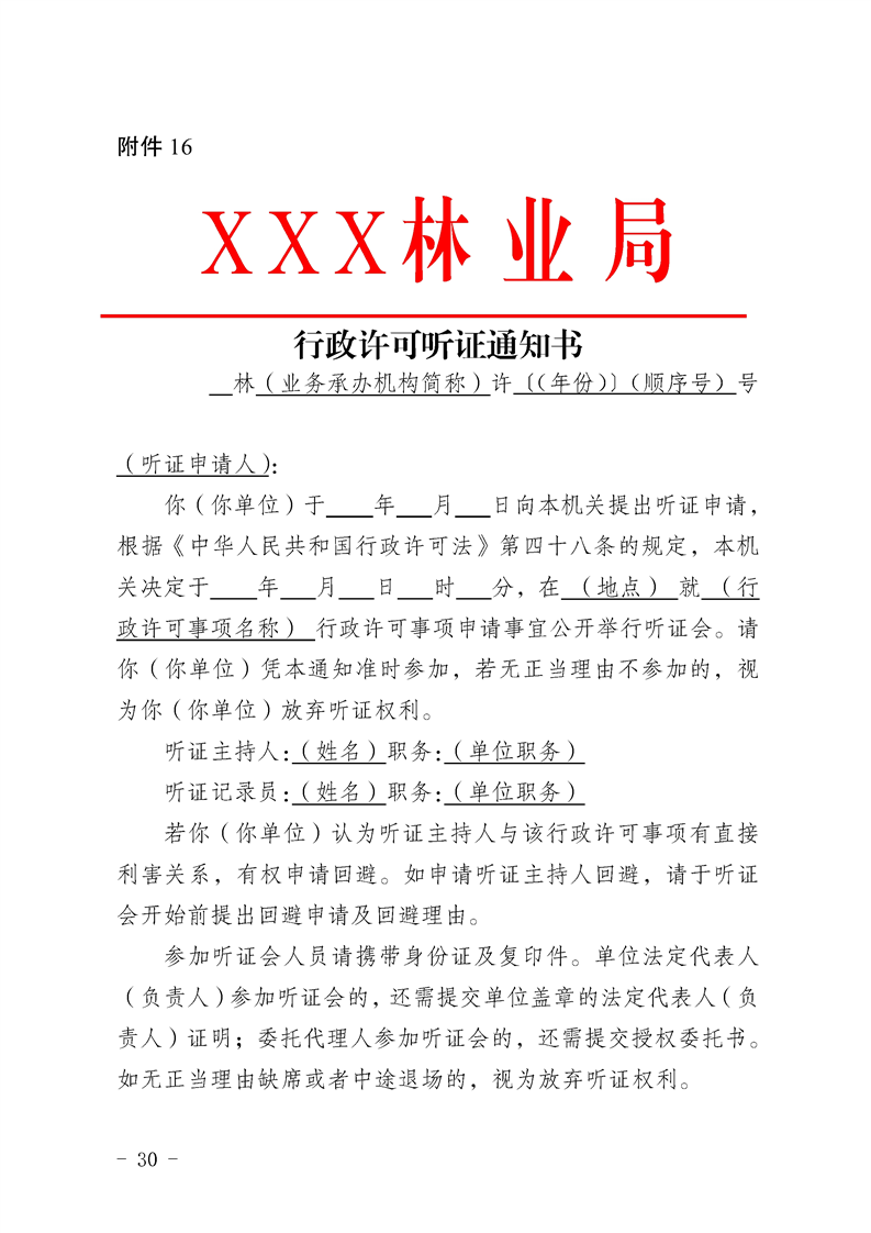 湖南省林业局关于印发《湖南省林业行政许可文书格式范本》的通知