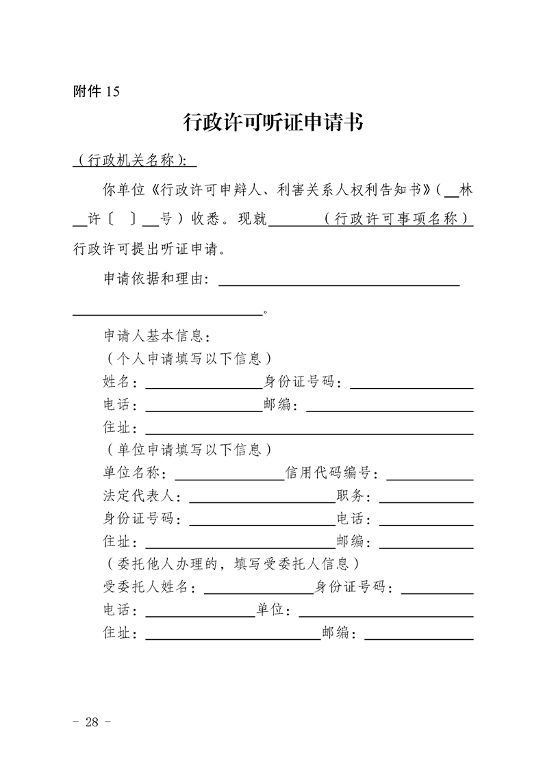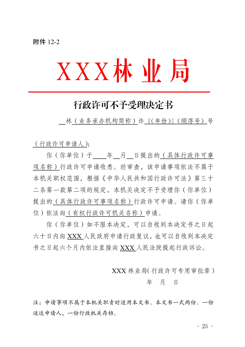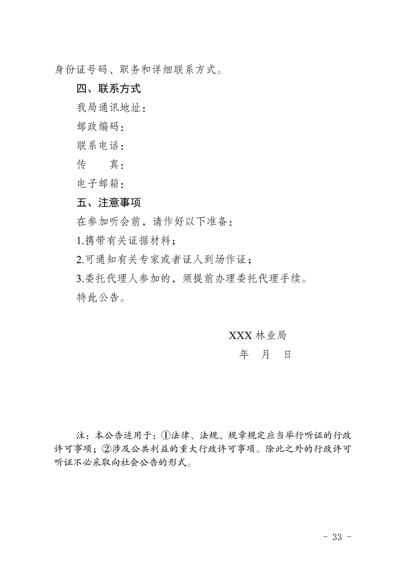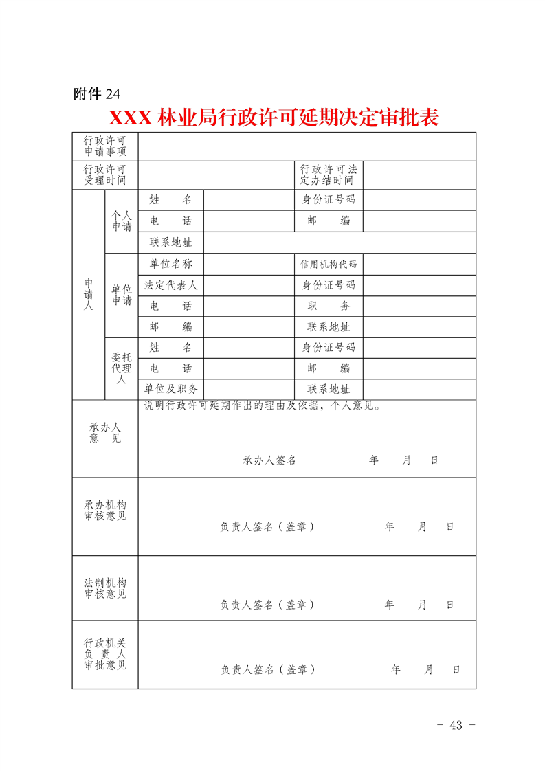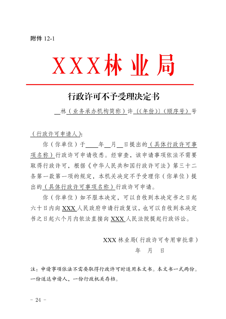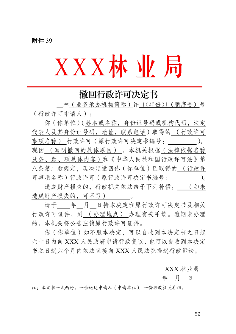 湖南省林业局关于印发《湖南省林业行政许可文书格式范本》的通知