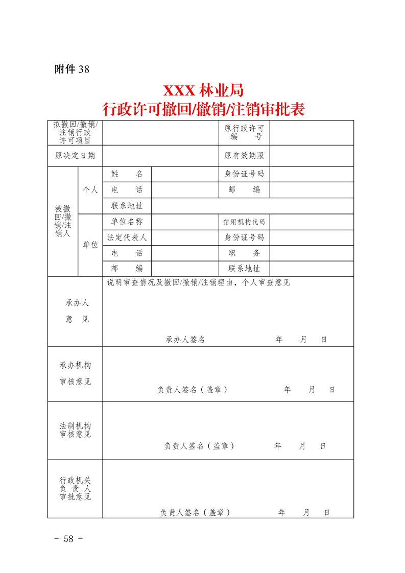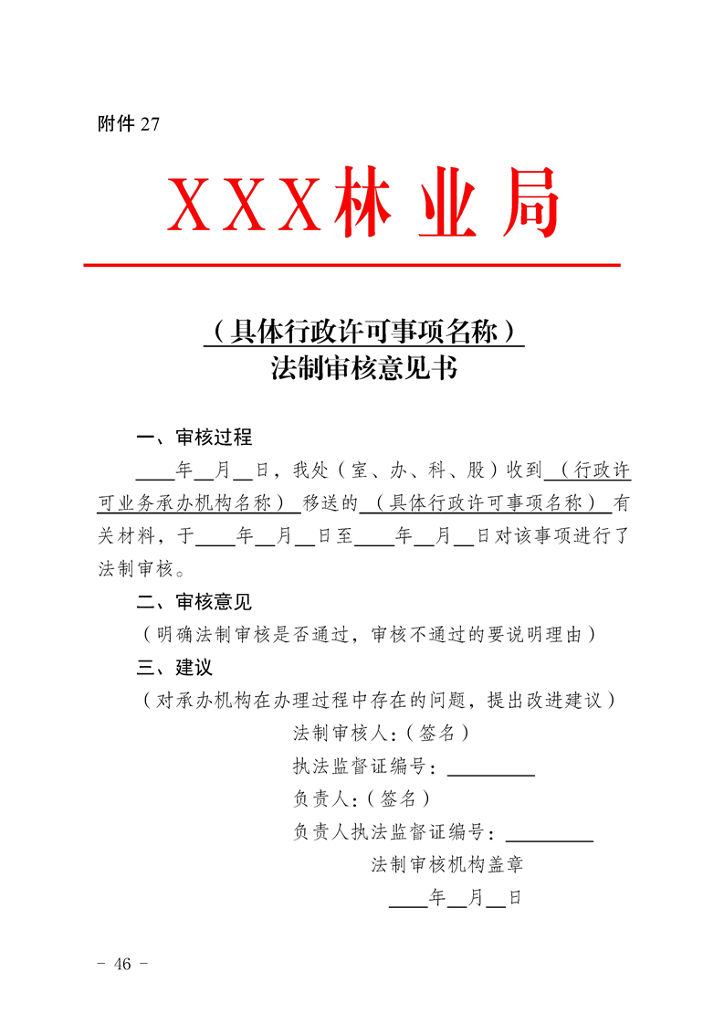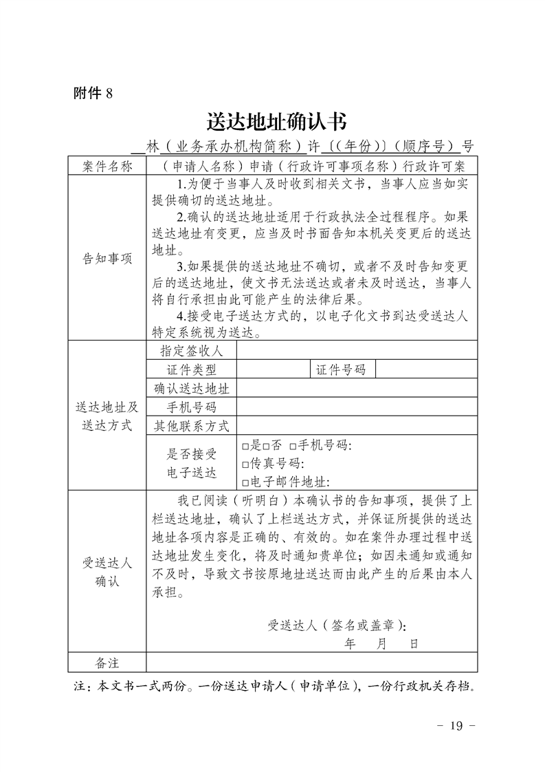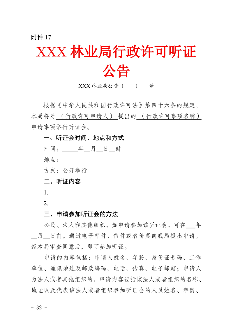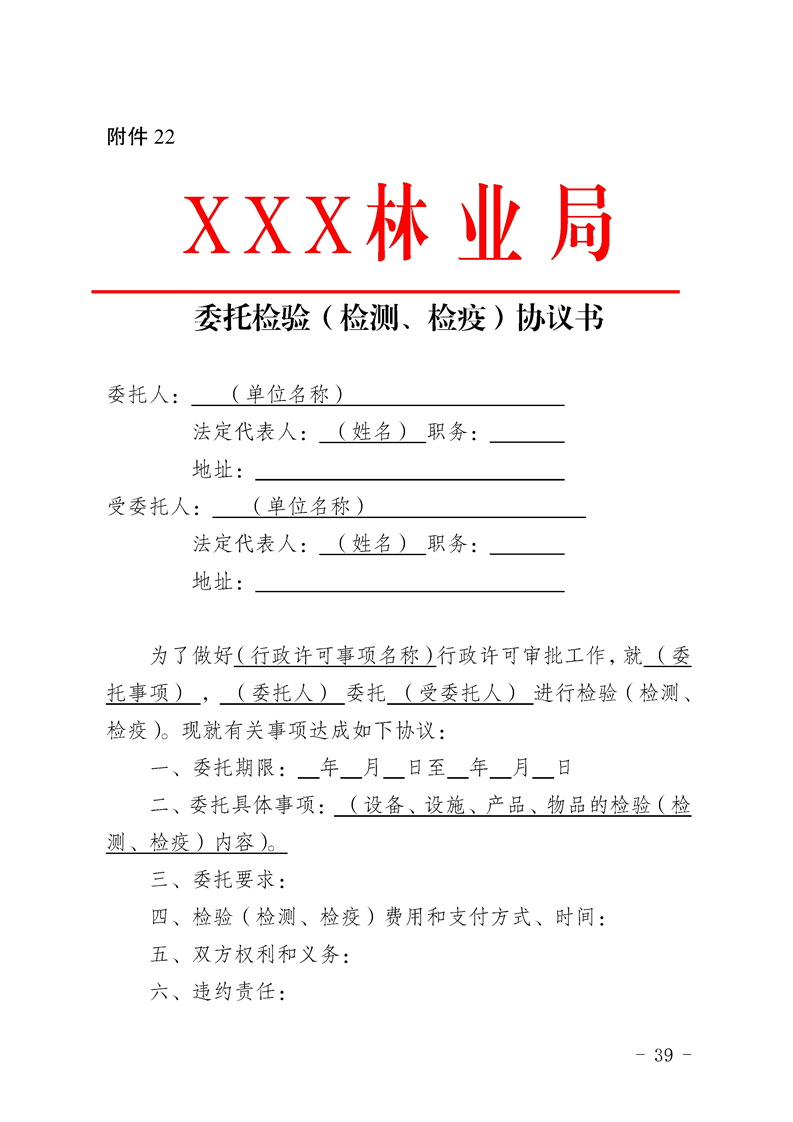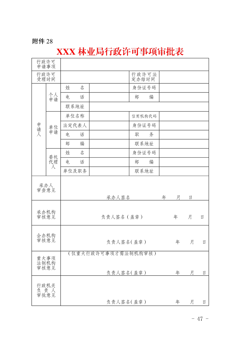 湖南省林业局关于印发《湖南省林业行政许可文书格式范本》的通知