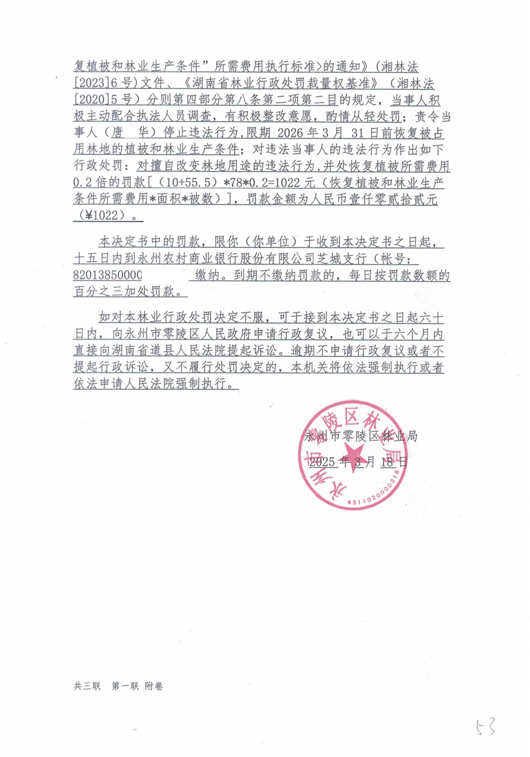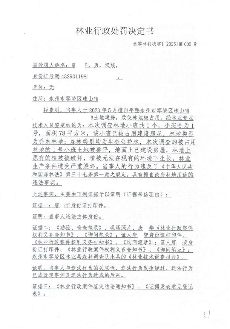 林业行政处罚决定书-永零林罚字[2025]005号