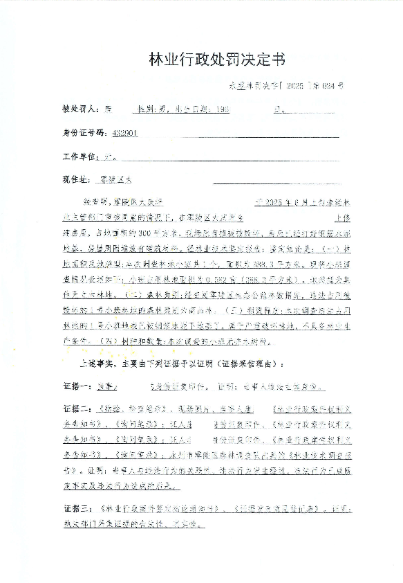 林业行政处罚决定书-永零林罚决字[2025]第024号