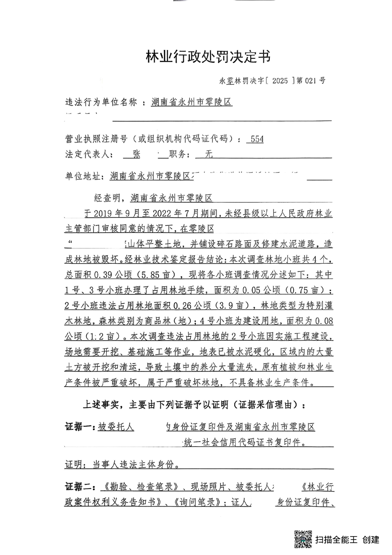 林业行政处罚决定书-永零林罚决字[2025]第021号
