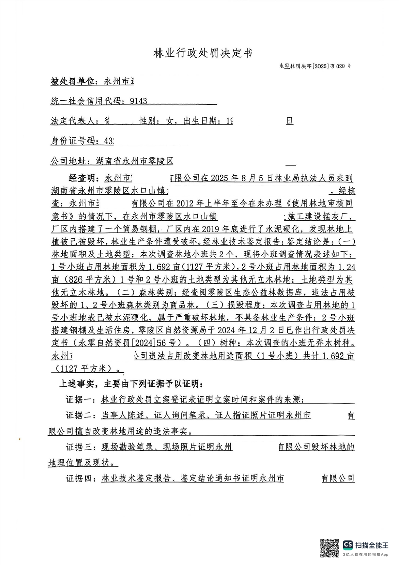 林业行政处罚决定书-永零林罚决字[2025]第029号