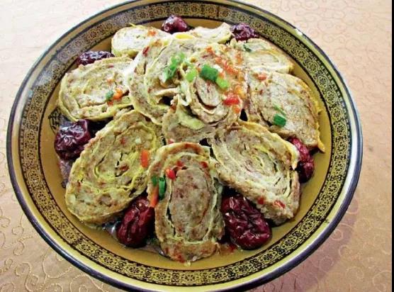 主料:熟鸡蛋卷150克、水发墨鱼150克、鲜肉100克、熟猪肚100 克。