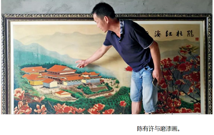 并被省国画院收藏。1992年9月,潮水农民磨漆画在省展览馆举行专题展览,共展出作品 60 件。1993年成立潮水农民磨漆画公司,是年,潮水乡被文化部命名为“文化艺术之乡”,永州磨漆画逐渐成为永州的一张文化名片。