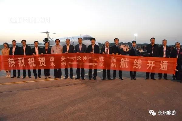 10月28日下午,“永州—西安、永州—泉州、永州—珠海航线首航仪式”在永州机场举行,永州市委副书记、政法委书记何录春出席首航仪式并讲话,市委常委、副市长周荣峰主持仪式,华夏航空副总裁张竞开、永州相关市直部门领导以及首航航班机组人员等出席。此次3条新航线的开通,是永州继开通直飞昆明、上海、海口、北京、重庆、贵阳、福州等地7条航线之后,重视航空市场培育和民航发展的又一个新的成果,将进一步密切永州与东南沿海以及大西北地区乃至全国的联系,提升永州开放崛起形象,推动永州对外经贸、文化旅游的发展和促进经济社会持续快速发展。