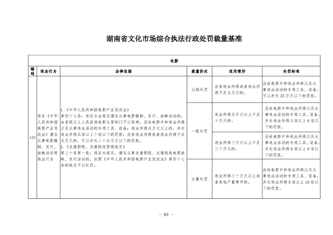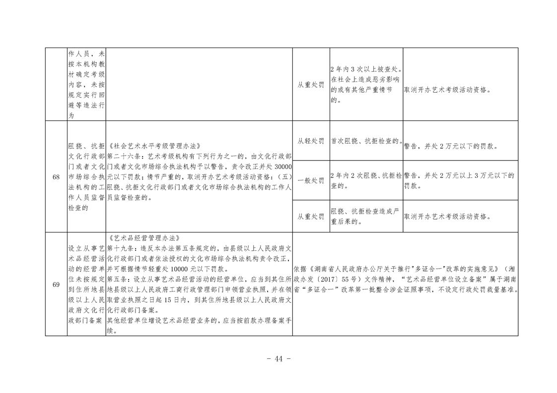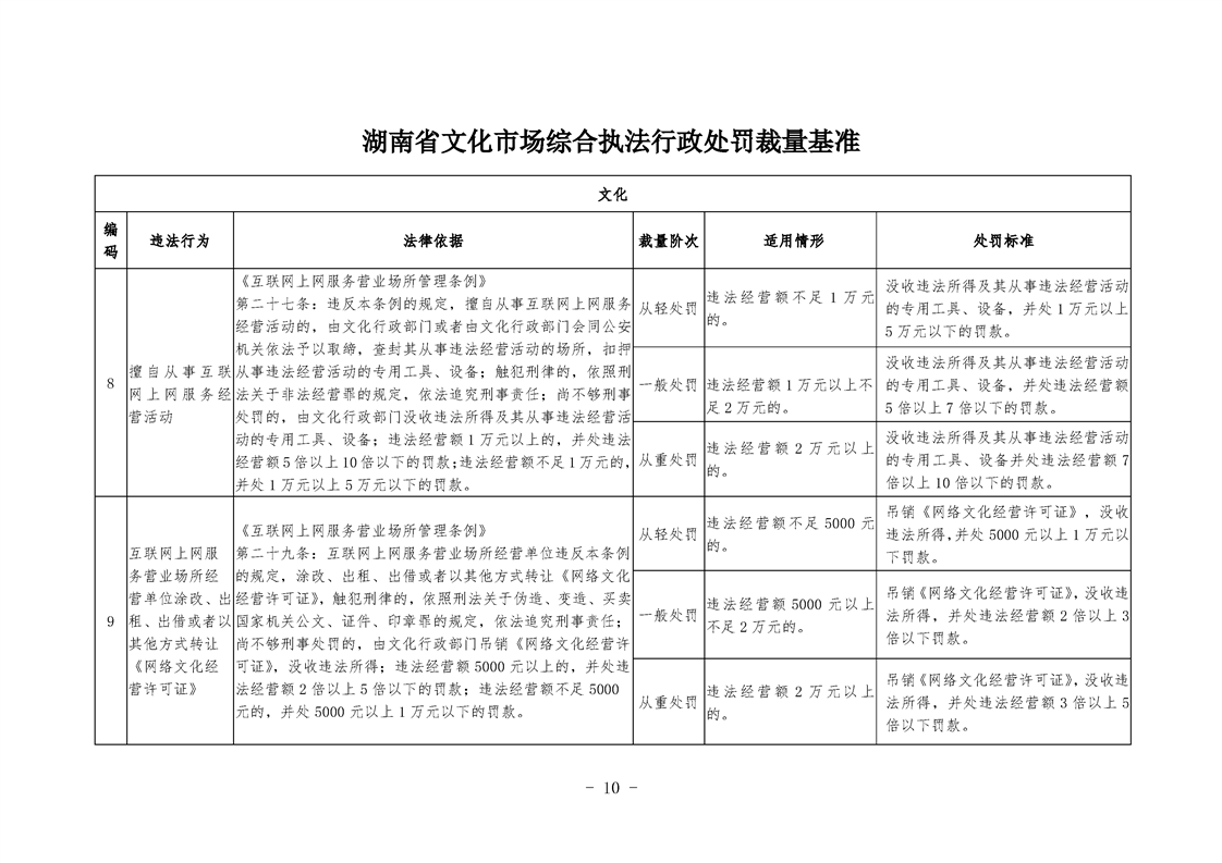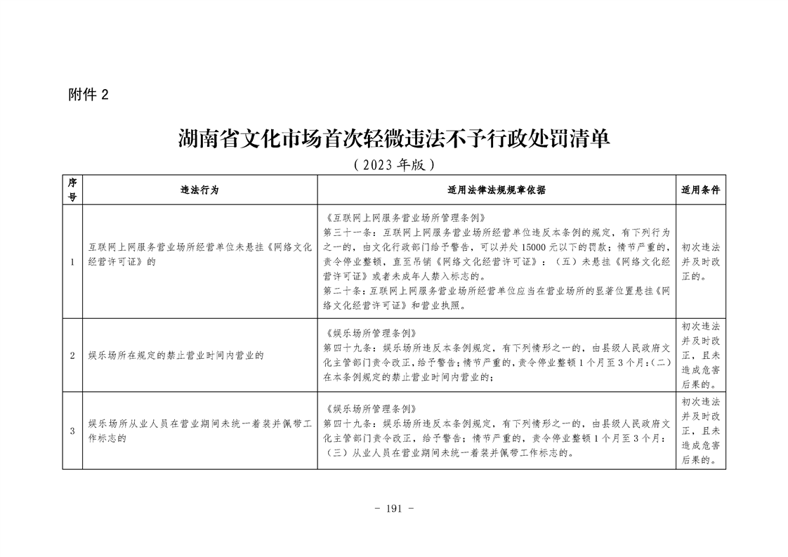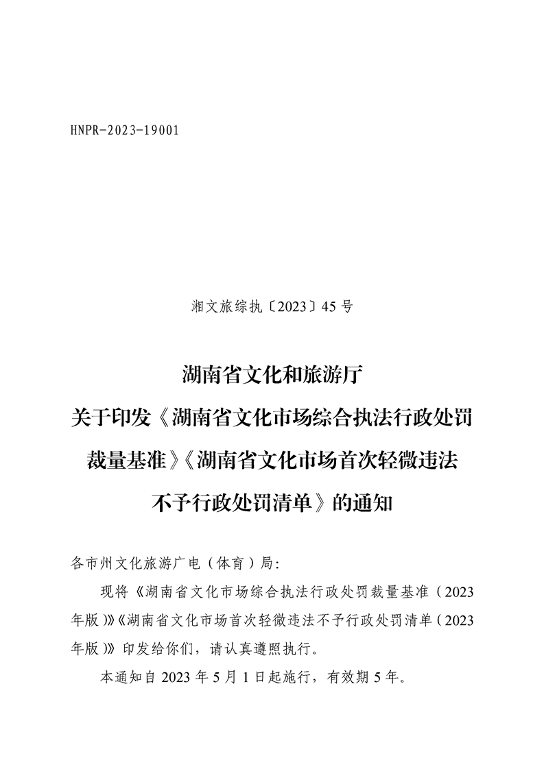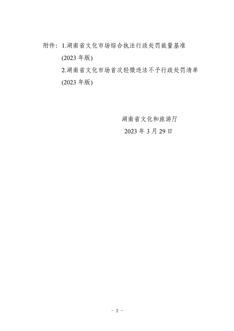 湖南省文化和旅游厅关于印发《湖南省文化市场综合执法行政处罚裁量基准》《湖南省文化市场首次轻微违法不予行政处罚清单》的通知