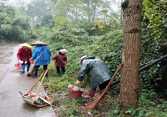 图为水口山镇毛溪桥村村民积极响应倡议冒雨参与春节村庄清洁行动