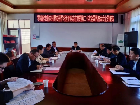 (通讯员 雷艮辉 邓梦洁)10月18日上午,零陵区农业农村局党组书记、局长杜中运主持召开局党组理论学习中心组集体学习交流会议,传达学习习近平同志在中国共产党第二十次全国代表大会上的报告精神,并结合农业农村工作实际,开展集中讨论,交流初步学习体会,研究部署学习宣传贯彻措施,局党组理论学习中心组全体人员参加会议。
