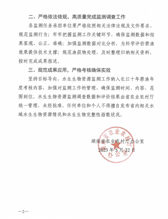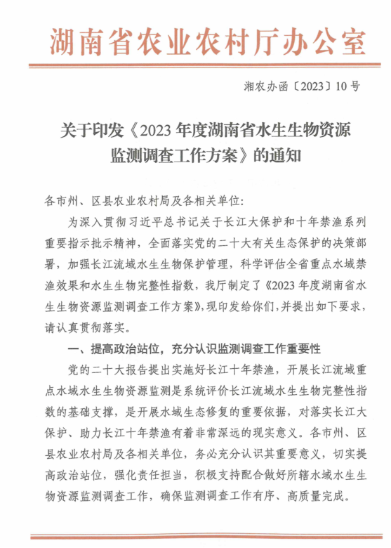 附件2:关于印发《2023年度湖南省水生生物资源监测调查工作方案》的通知(湘农办函〔2023〕10号)