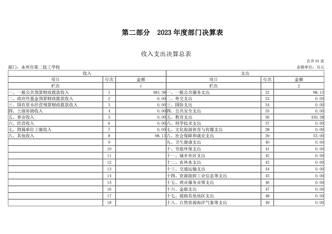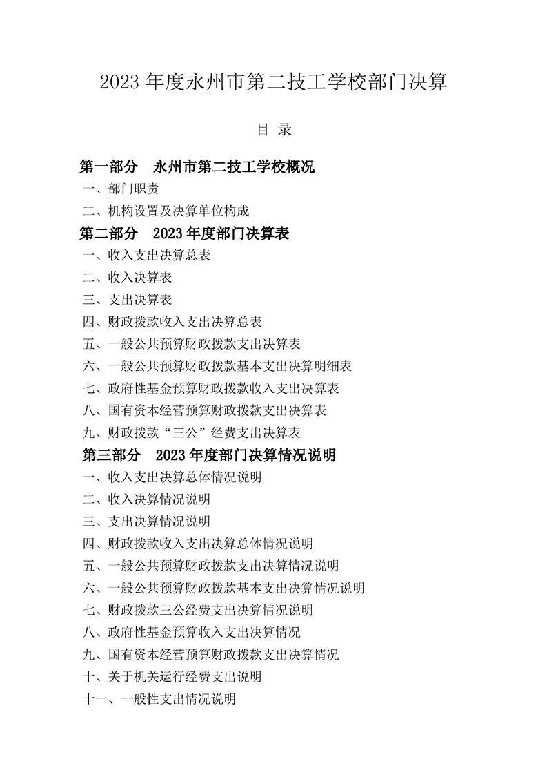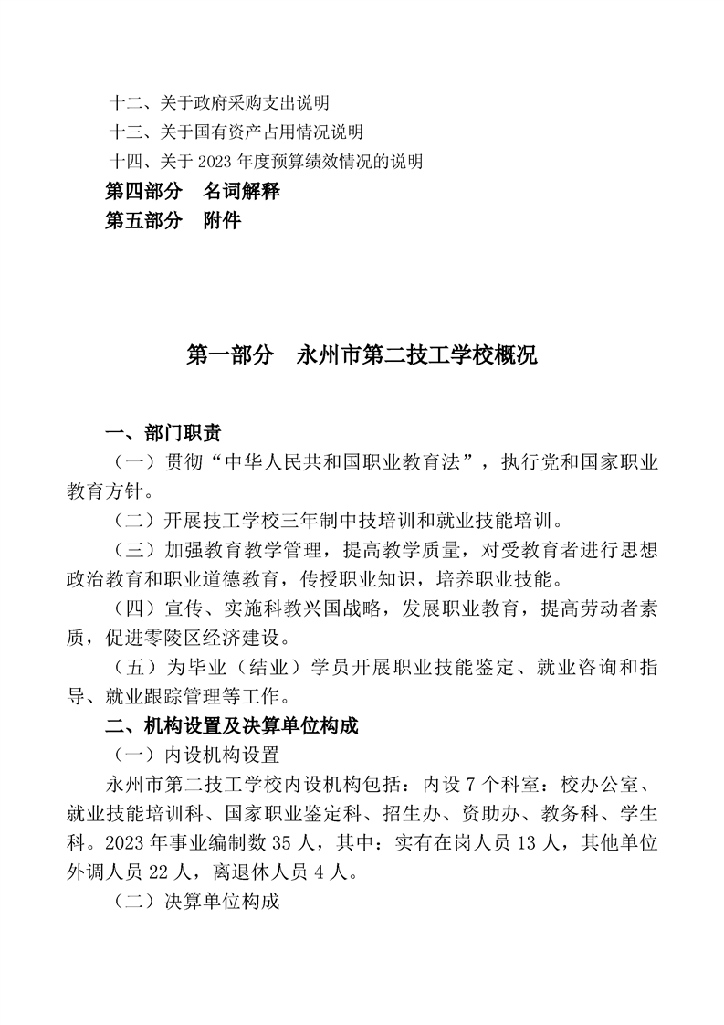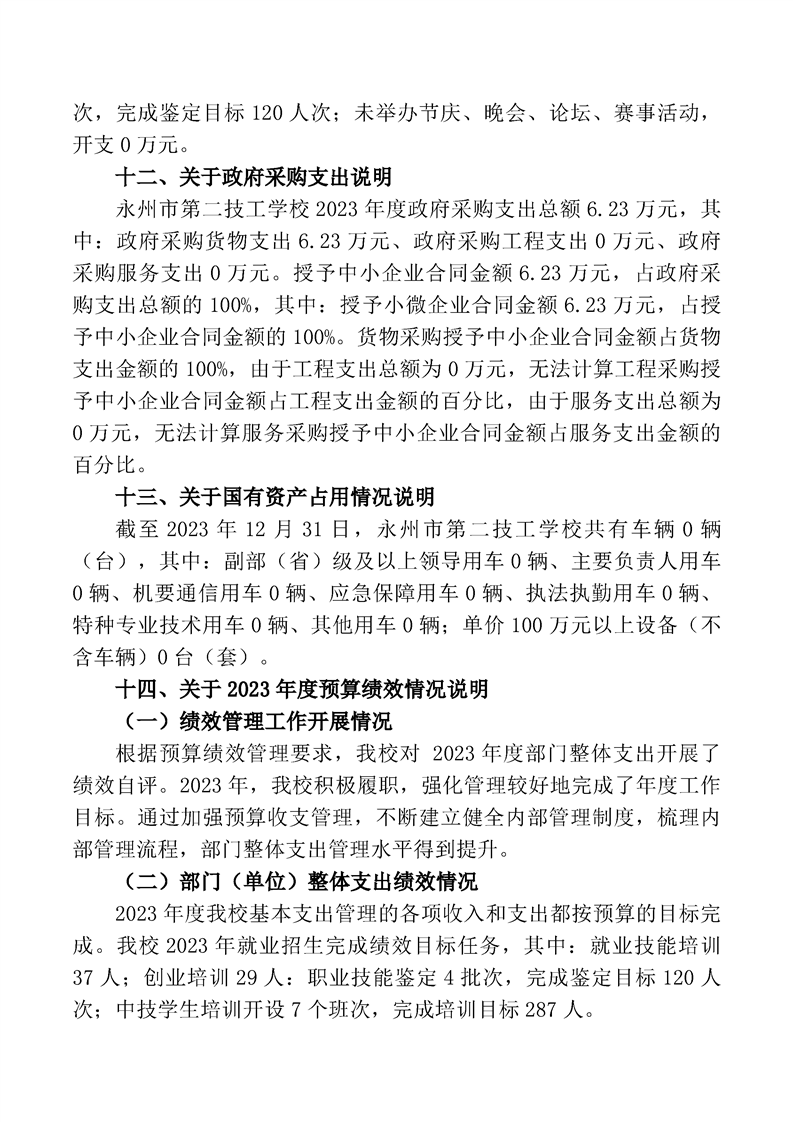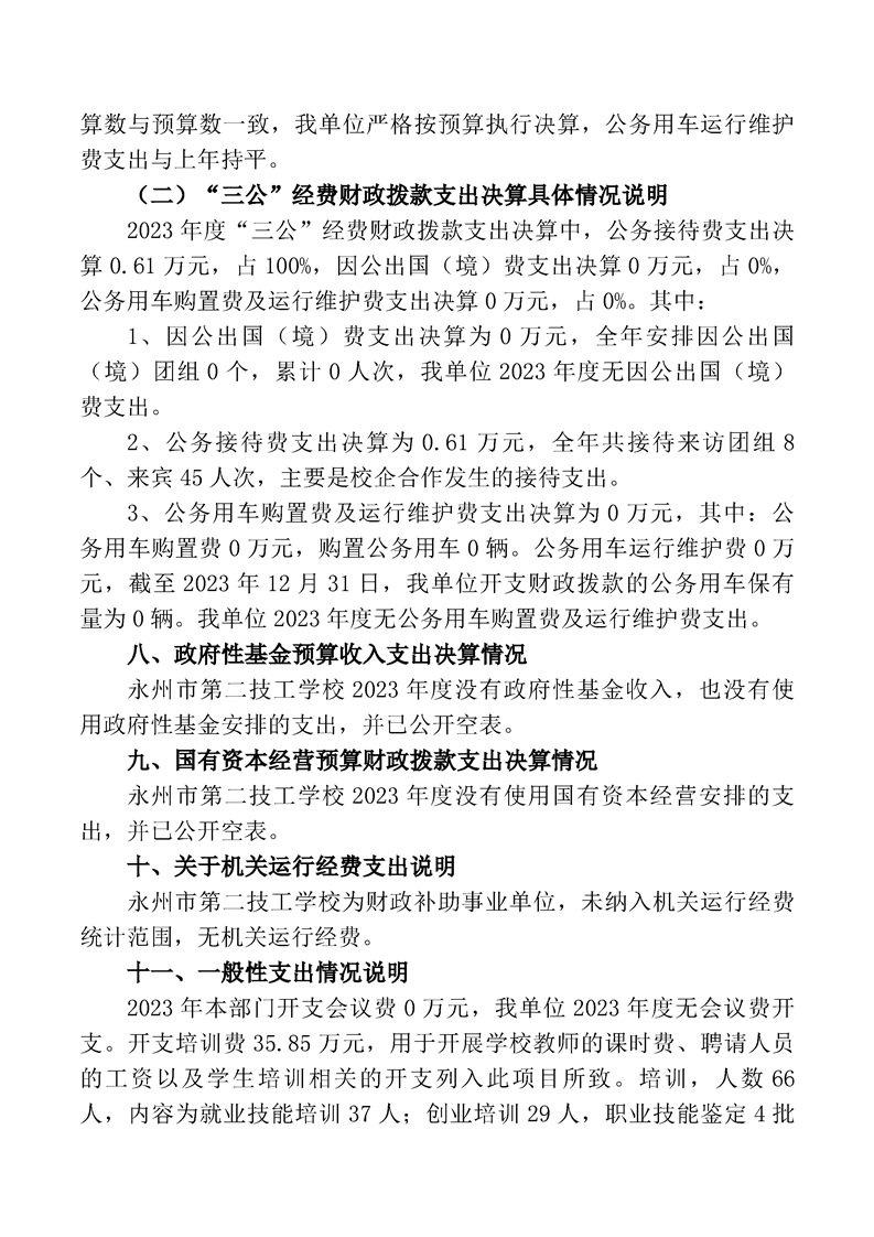 2023年度永州市第二技工学校部门决算