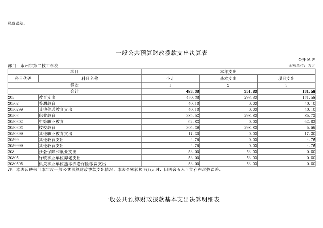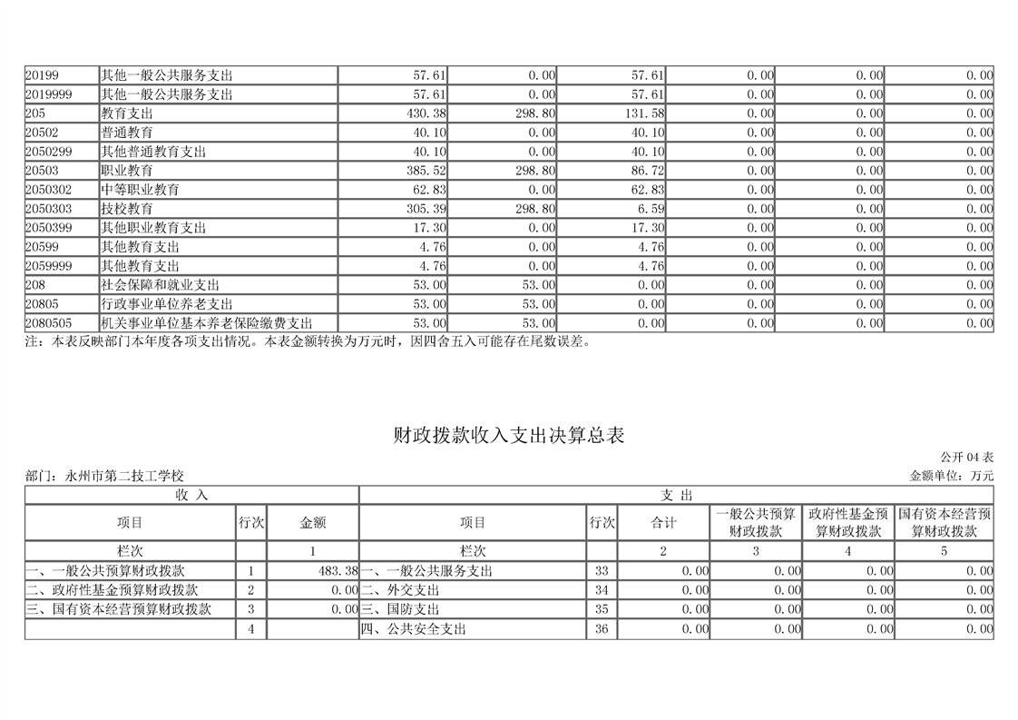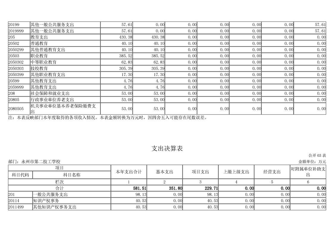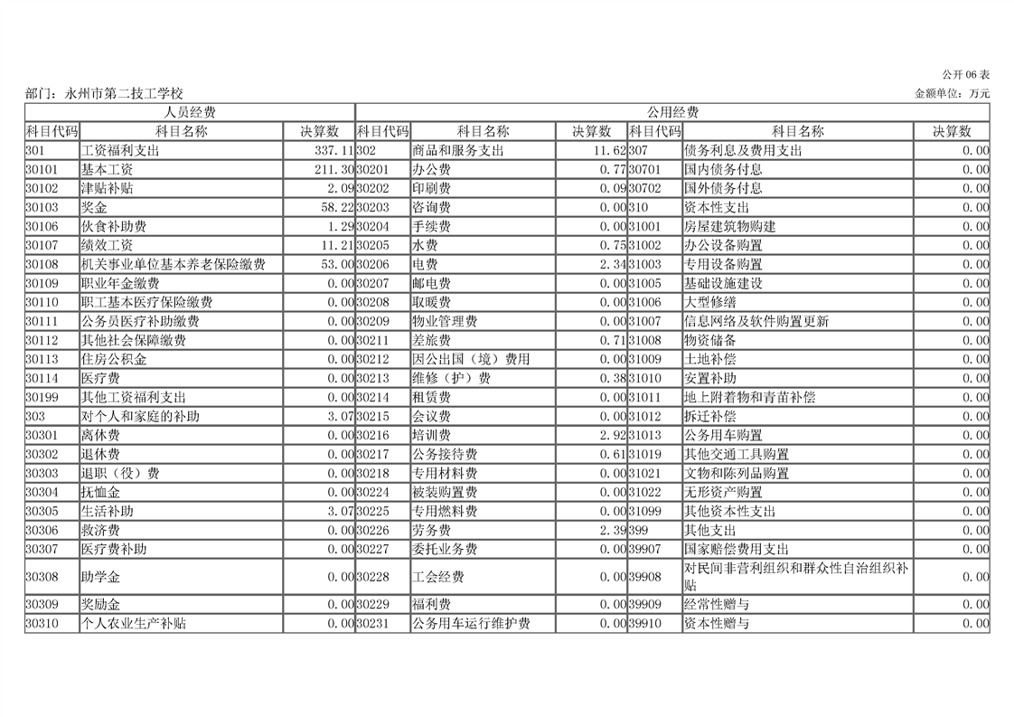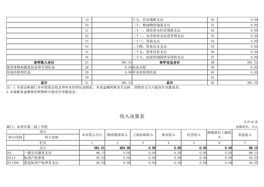2023年度永州市第二技工学校部门决算