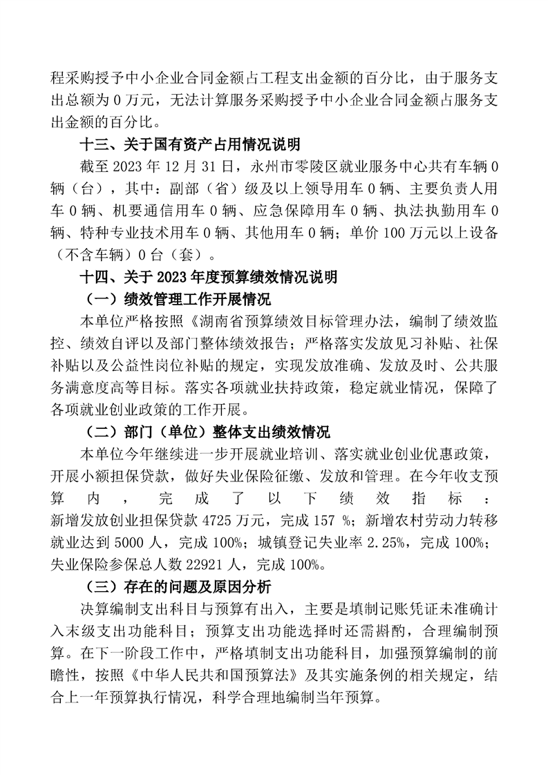 2023年部门整体绩效自评报告(永州市零陵区就业服务中心)
