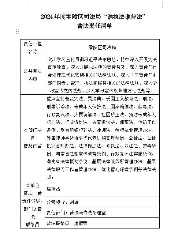 2024年度零陵区司法局“谁执法谁普法”普法责任清单及2024年度零陵区司法局“谁执法谁普法”重点任务清单