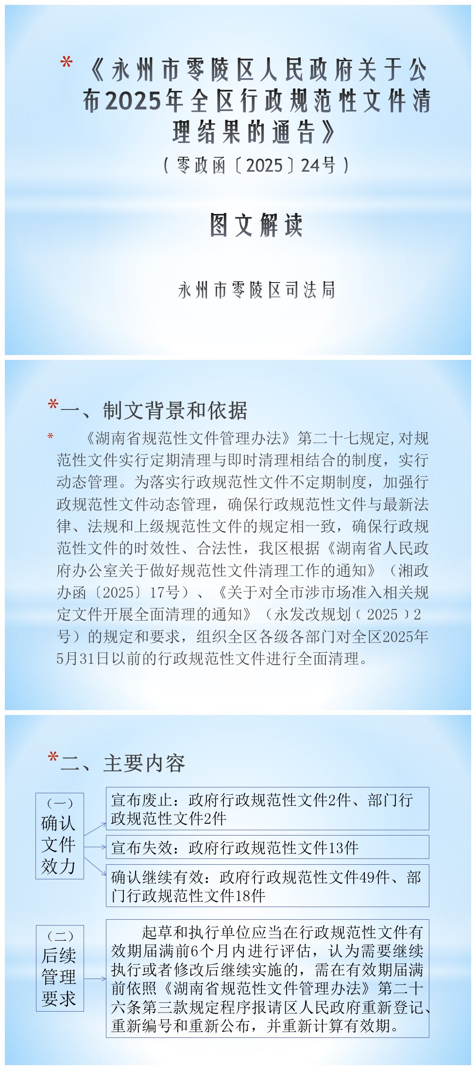 《永州市零陵区人民政府关于公布2025年全区行政规范性文件清理结果的通告》(零政函(2025〕24号)图文解读