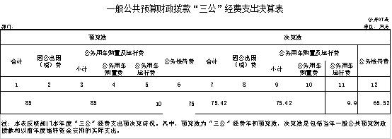 第三部分 零陵区商务局2018年度部门决算情况说明 一、收入支出决算总体情况说明 本部门2018年度收入总计2760.69万元,其中:财政拨款收入2760.69万元,事业收入0万元,经营收入0万 元,其他收入0万元,政府性基金预算财政拨款收入0万元;支出总计2760.69万,其中:基本支出1142.82万元,营业支出0万元,政府性基金预算财政支出0万元,项目支出为1617.86万元。 二、收入决算情况说明 本部门2018年度收入总计2760.69万元,其中:财政拨款收入2760.69万元,占总收入的100%,事业收入0万元,经营收入0万 元,其他收入0万元,政府性基金预算财政拨款收入0万元。 三、支出决算情况说明 本部门2018年度支出总计2760.69万元,财政拨款支出占100%,其中:基本支出1142.82万元,项目支出1617.86万元,经营支出0万元,政府性基金预算财政支出0万元。总支出2760.69万元按项目分类其中:一般公共服务支出 671.7万元,占总支出的24.33%;科学技术支出970万元,占总支出的35.14%;社会保障和就业支出22.44万元, 占总支出的8.13%;商业服务支出251.25万元,占总支出的9.10%;粮油物资储备支出845.29万元,占总支出的30.62% 四、财政拨款收入支出决算总体情况说明 本部门2018年度收入总计2760.69万元,其中:财政拨款收入2760.69万元,占总收入的100%,事业收入0万元,经营收入0万 元,其他收入0万元,政府性基金预算财政拨款收入0万元。本部门2018年度支出总计2760.69万元,财政拨款支出占100%,其中:一般公共服务支出671.7万元,科学技术支出970万元,社会保障和就业支出22.44万元。2017年决算总收入1491.96万元,总支出1491.96万元,2018年较2017年收入和支出都有大幅增加,主要原因:1.人员增加及调资。2.增加了项目资金。3.对企业补助增加。 五、一般公共预算财政拨款支出决算情况说明 (一)财政拨款支出决算总体情况。 本部门2018年度支出总计2760.69万元,财政拨款支出占100%,其中:基本支出1142.82万元,项目支出1617.86万元,经营支出0万元,政府性基金预算财政支出0万元。总支出2760.69万元按项目分类其中:一般公共服务支出 671.7万元,占总支出的24.33%;科学技术支出970万元,占总支出的35.14%;社会保障和就业支出22.44万元, 占总支出的8.13%;商业服务支出251.25万元,占总支出的9.10%;粮油物资储备支出845.29万元,占总支出的30.62%。 (二)财政拨款支出决算结构情况。 本部门2018年度支出总计2760.69万元,财政拨款支出占100%,其中:基本支出1142.82万元,项目支出1617.86万元,经营支出0万元,政府性基金预算财政支出0万元。总支出2760.69万元按项目分类其中:一般公共服务支出 671.7万元,占总支出的24.33%;科学技术支出970万元,占总支出的35.14%;社会保障和就业支出22.44万元, 占总支出的8.13%;商业服务支出251.25万元,占总支出的9.10%;粮油物资储备支出845.29万元,占总支出的30.62%。 (三)财政拨款支出决算具体情况。 2018年度预算收入2760.69万元,预算支出822.26万元:2018年度决算收入2760.69万元,决算支出2760.69万元。决算比预算增加1938.43万元,主要原因:一是对企业补助增加。二是人员工资正常调资增加。三是项目经费增加。 六、一般公共预算财政拨款基本支出决算情况说明 本部门2018年度财政拨款基本支出2760.69万元,占总支出的100%,其中人员经费774.65万元,占总支出的28.06%,公用经费368.17万元,占总支出的13.34%。其中:人员经费774.65万元,主要包括:基本工资235.2万元、津贴补贴153.86万元(含车补和绩效工资)、奖金263.58万元、医保、其他社会保障缴费29.67万元、伙食补助13.75万元,其他工资福利支出63.6万元;对个人和家庭15万元;主要包括:抚恤金13.47万元、奖励金0.67万元、其他1.53万元。公用经费335.92万元,主要包括:办公费27.15万元、印刷费30.16万元、手续费0.14万元、水费12.65万元、电费13.71万元、邮电费0.25万元、差旅费22万元、维修(护)费41.93万元、租赁费106.9万元、会议费13.9万元、培训费7.15万元、公务接待费0.7万元、工会经费13.56万元、税金及附加费用.77万元、其他商品和服务支出44.95万元。对企业补助32.24万元,主要包括:费用补助32.32万元、其他对企业补助0.92万元。 七、一般公共预算财政拨款“三公”经费支出决算情况说明 (一)“三公”经费财政拨款支出决算总体情况说明。 1)“三公”经费支出情况:2018年度“三公”经费预算支出:因公出国(境)费支出0万元,公务用车购置及运行费支出75.42万元,公务接待费支出65.52万元。“三公”经费决算支出:因公出国(境)费支出0万元,公务用车购置及运行费支出9.9万元,公务接待费支出65.52万元。2017年度“三公”经费决算支出:因公出国(境)费支出0万元,公务用车购置及运行费支出9.2万元,公务接待费支出29.97万元。2018年“三公”经费决算支出比上年增加36.23%,主要是招商费用增加了。 (二)“三公”经费财政拨款支出决算具体情况说明。 本部门2018年度“三公”经费财政拨款预算支出为85万元,决算支出75.42万元,完成预算的88.83%,其中:因公出国(境)费支出决算为0万元,完成预算的0%;公务用车购置及运行费支出决算为9.9万元,完成预算的99%;公务接待费支出决算为75万元,完成预算的87.36%。招待批次35次,招待人数为1511人。上年为39.19万元,比上年增加36.23万元,增加92.46%,招商开支招待费有较大增加。⠼/span> 八、政府性基金预算收入支出决算情况 2018年 政府性基金收入0万元,支出0万元 九、关于2018年度预算绩效情况说明 本部门根据上级党委政府下达的工作任