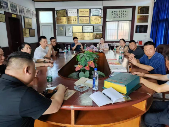 区商务局工作人员陪同区委常委彭定国主任与武汉傲奇龙酒业有限公司洽谈项目