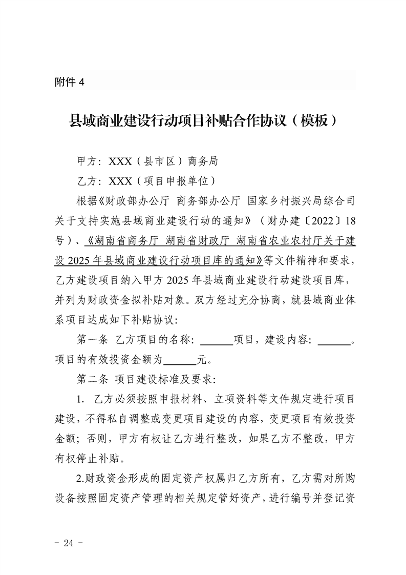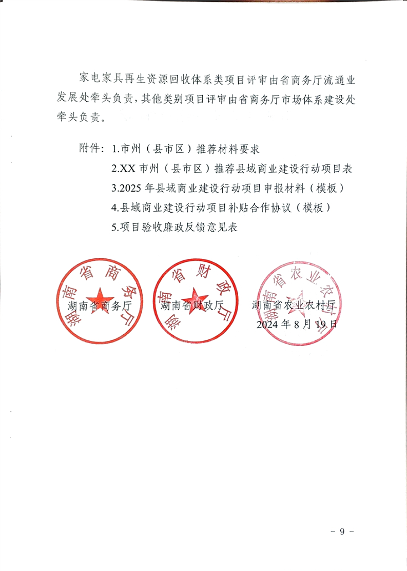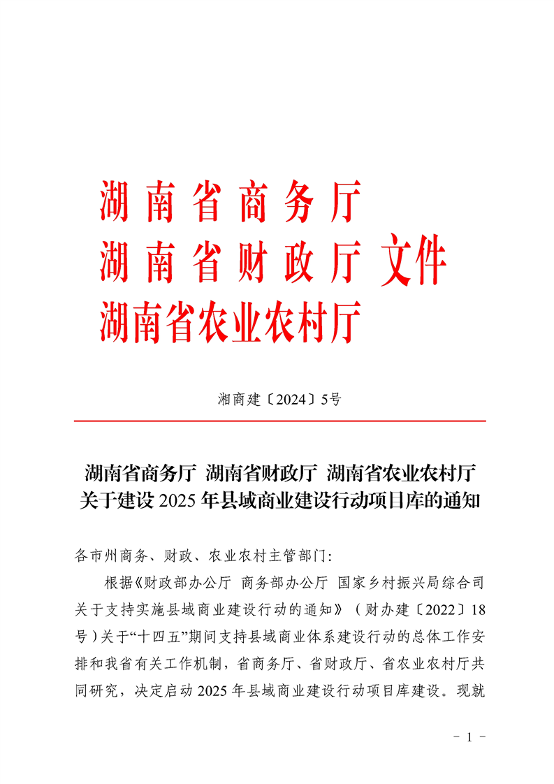 湖南省商务厅 湖南省财政厅 湖南省农业农村厅 关于建设2025年县域商业建设行动项目库的通知