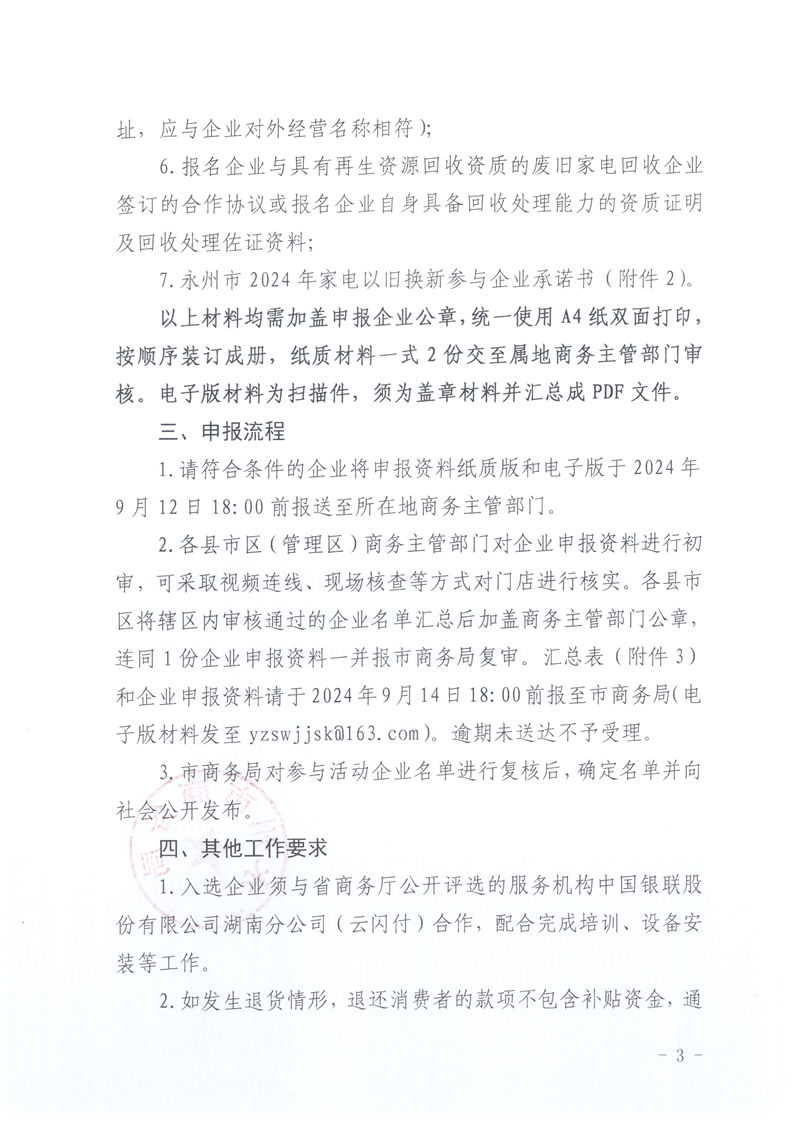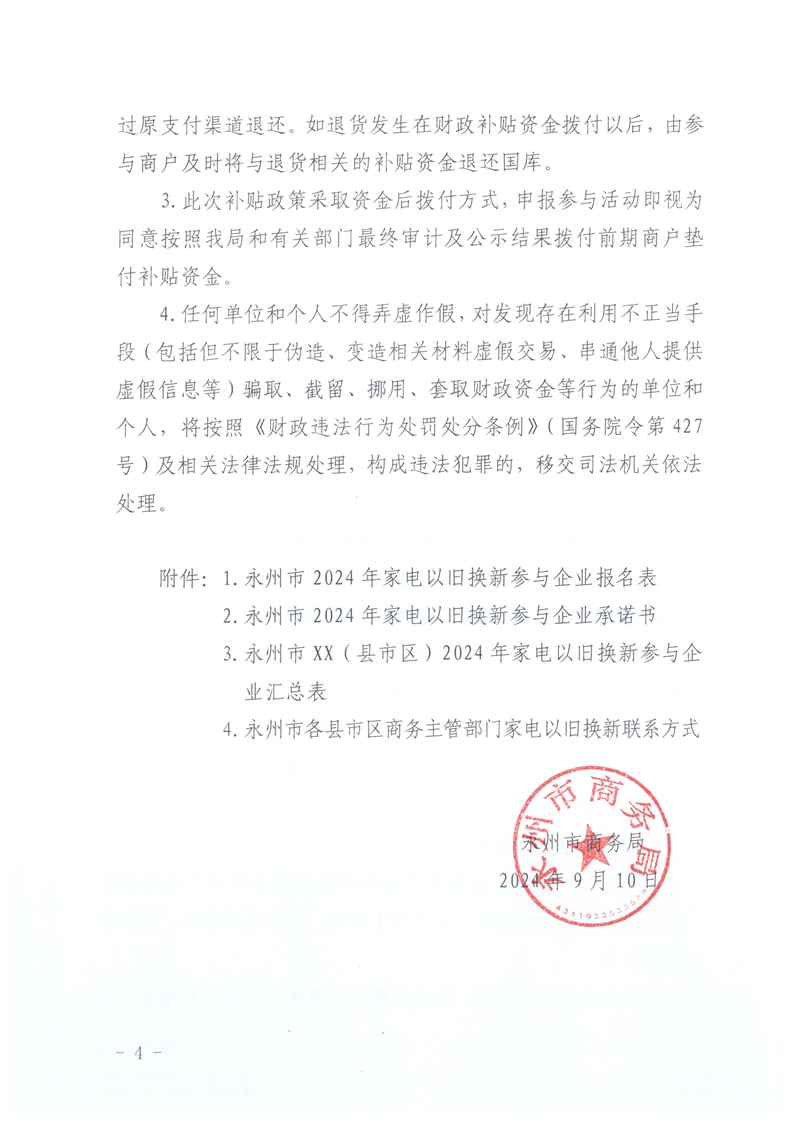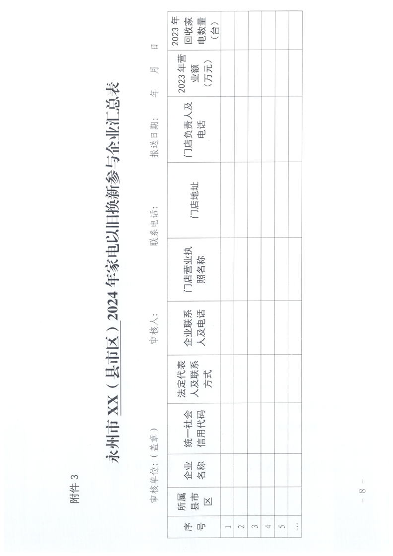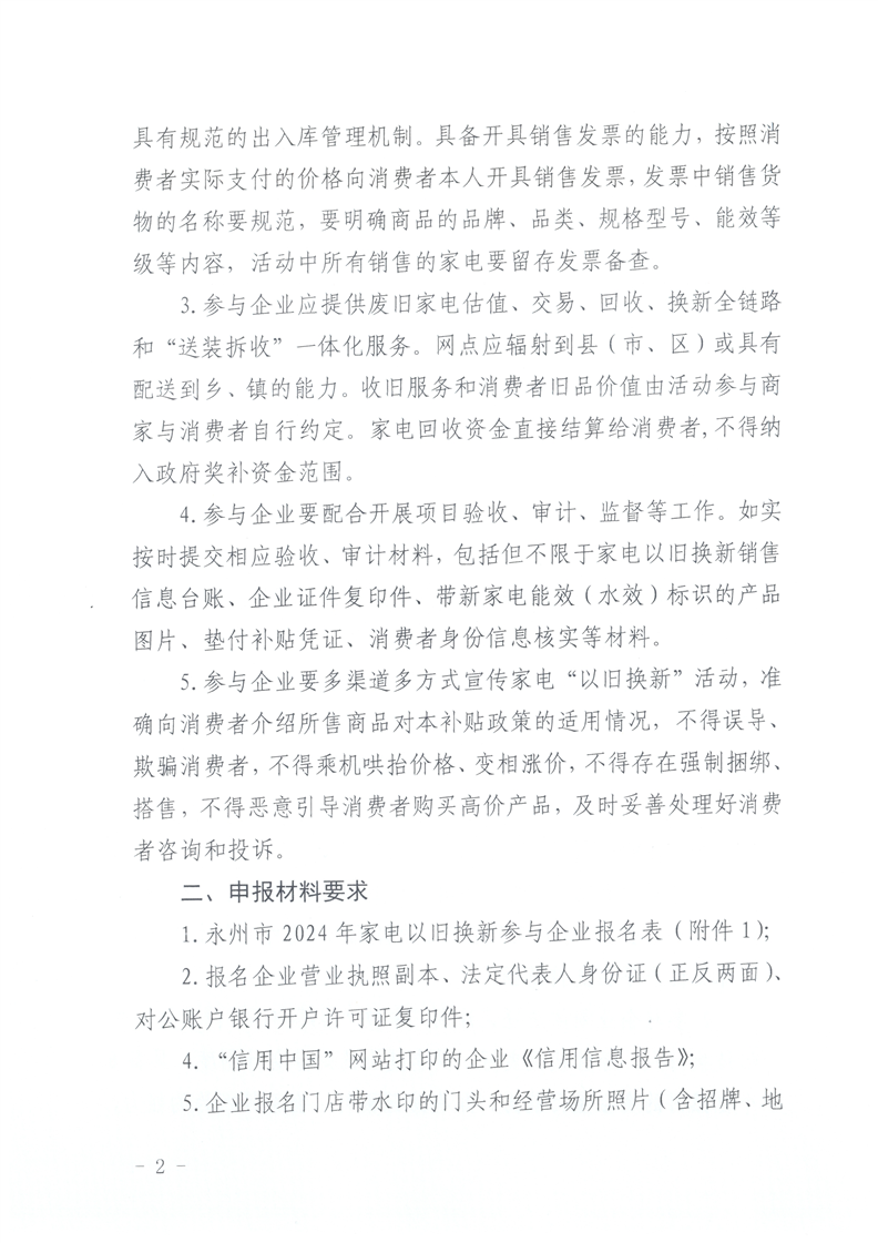 关于征集参与2024年永州市家电以旧换新补贴活动企业的通知