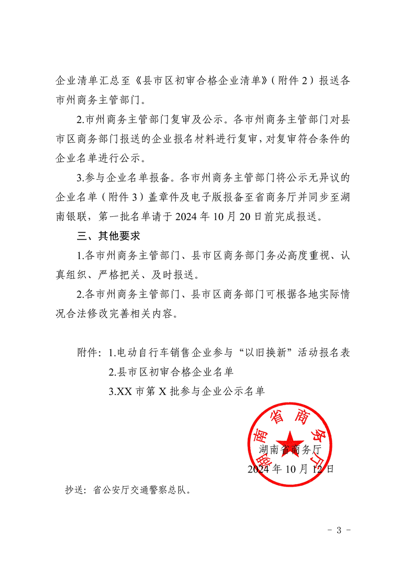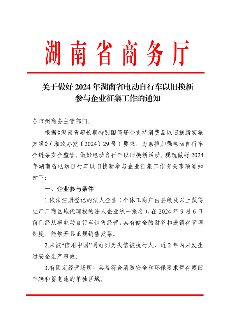 关于做好2024年湖南省电动自行车以旧换新参与企业征集工作的通知