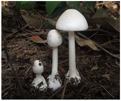 在我国,导致中毒死亡的70%是由鹅膏菌属中的种类所引起,剧毒鹅膏菌是毒蘑菇中比较好识别和区分的,它同时具有菌盖、菌柄、菌环和菌托,通俗地说,就是“头上戴帽(指有菌盖)、腰间系裙(指有菌环)、脚上还穿鞋(指有菌托)”的蘑菇就是鹅膏菌,这类蘑菇大部分是有毒的,因此,凡是“头上戴帽、腰间系裙、脚上还穿鞋”的蘑菇千万不能采食。