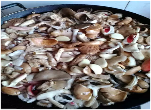 该图片为患者加工野生蘑菇时所拍,患者在加工野生蘑菇时放了大量大蒜,由于大蒜没变黑,患者应为可食,结果导致一家6人全部中毒,其中2人死亡。