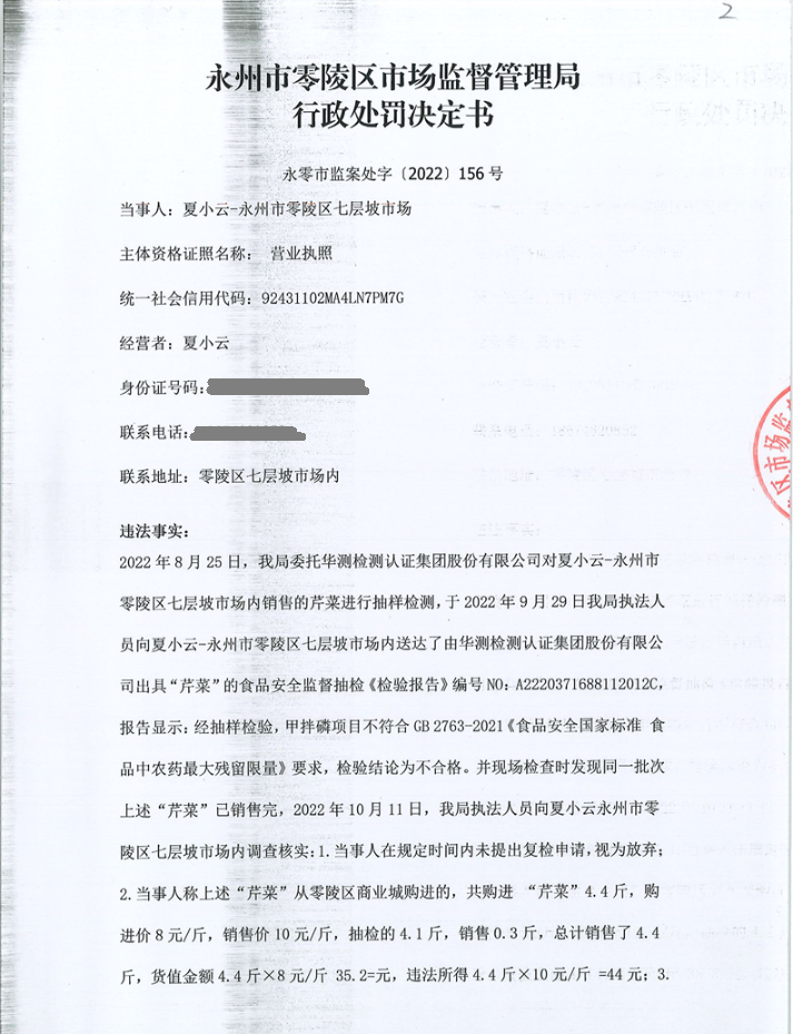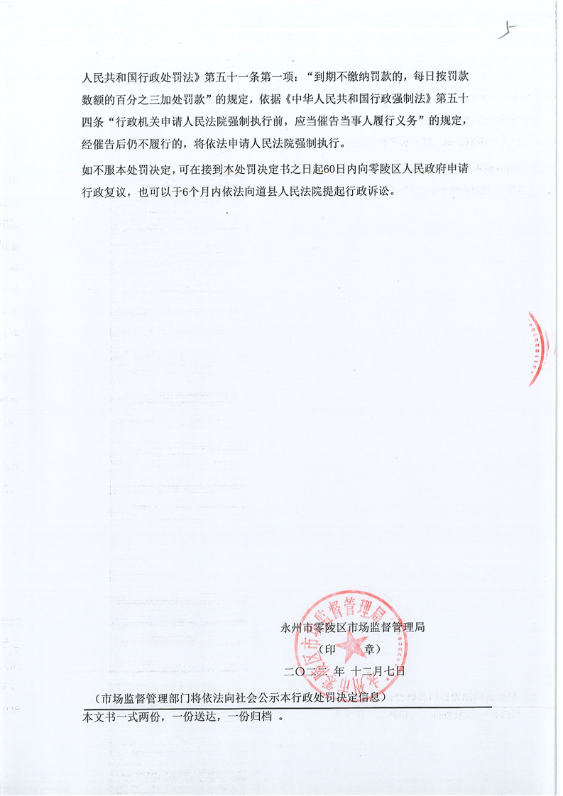 永州市零陵区市场监督管理局行政处罚决定书(永零市监案处字〔2022〕156号)