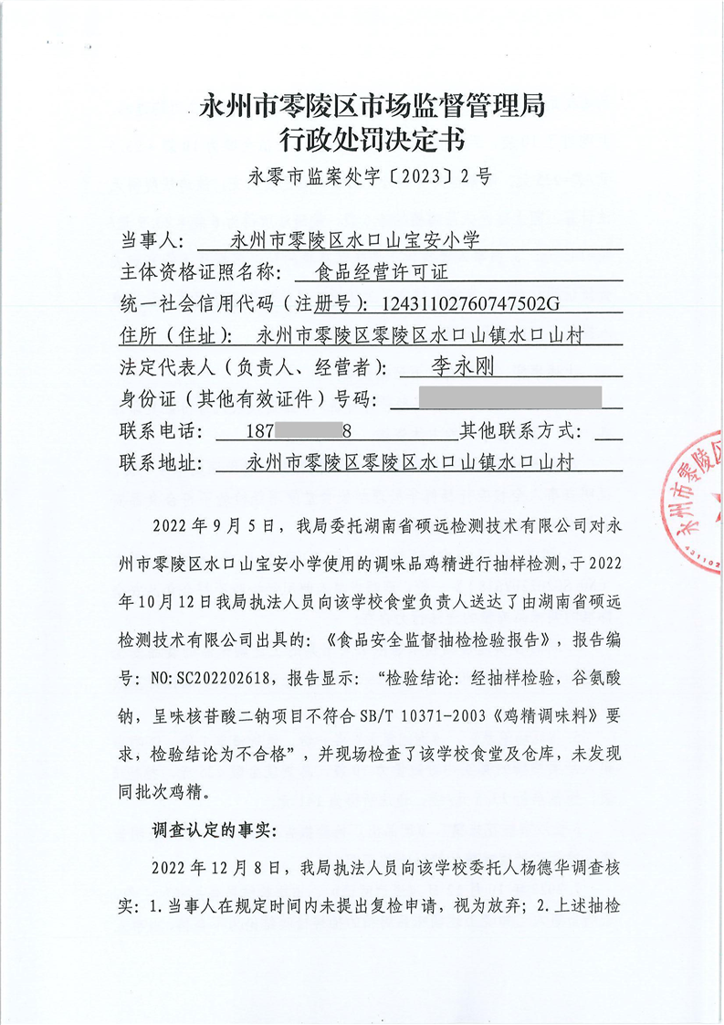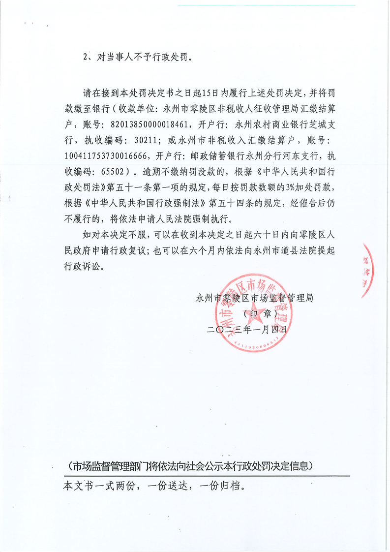 永州市零陵区市场监督管理局行政处罚决定书(永零市监案处字〔2023〕2号)