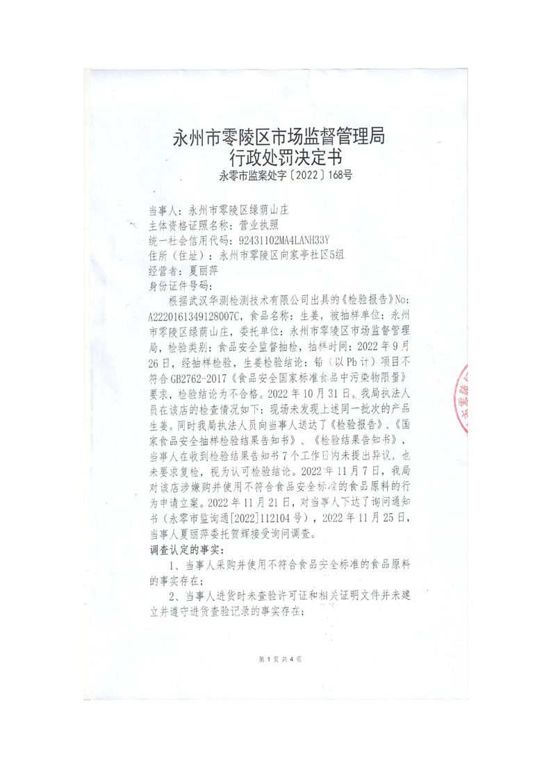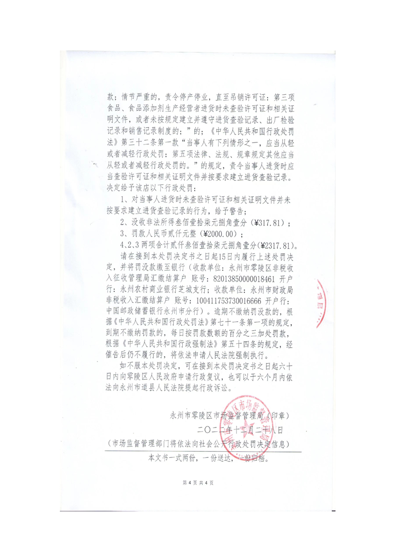 永州市零陵区市场监督管理局行政处罚决定书(永零市监案处字〔2022〕168号)