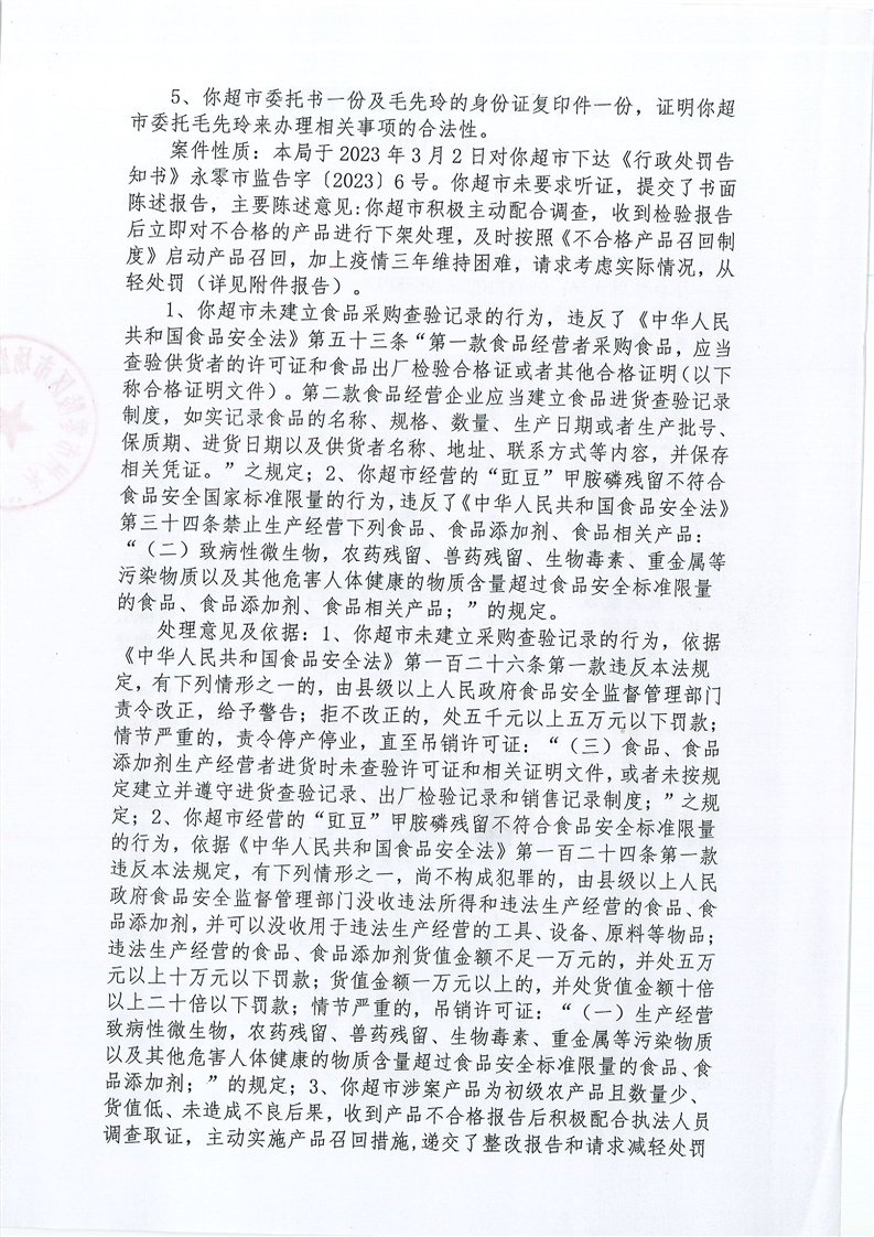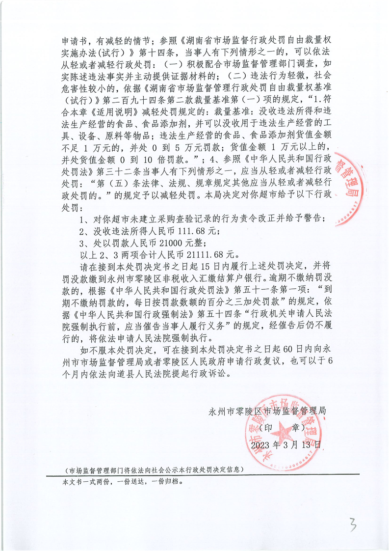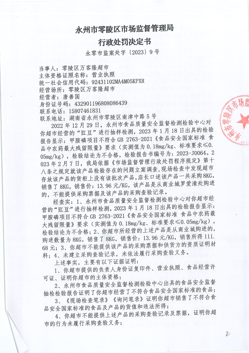 永州市零陵区市场监督管理局行政处罚决定书(永零市监案处字〔2023〕 9号)
