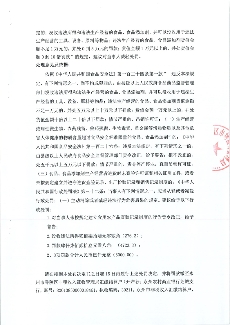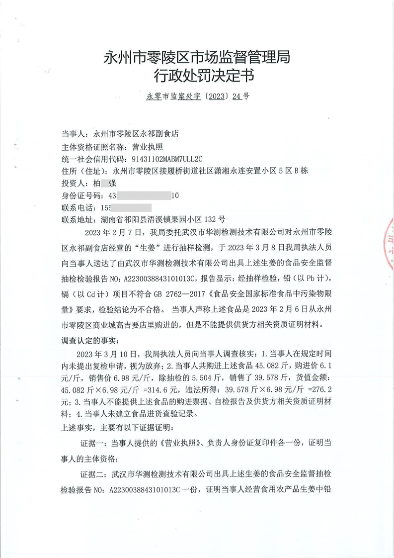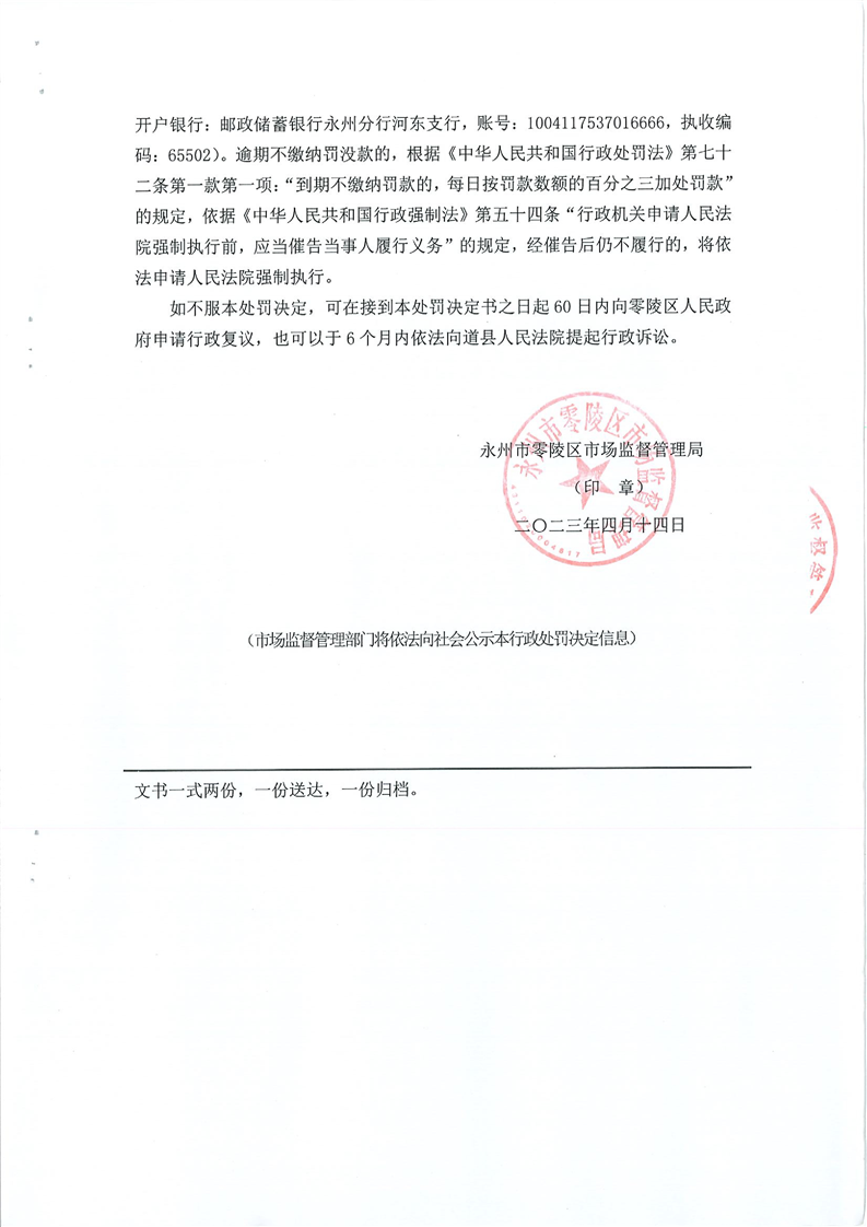 永州市零陵区市场监督管理局行政处罚决定书(永零市监案处字〔2023〕24号)