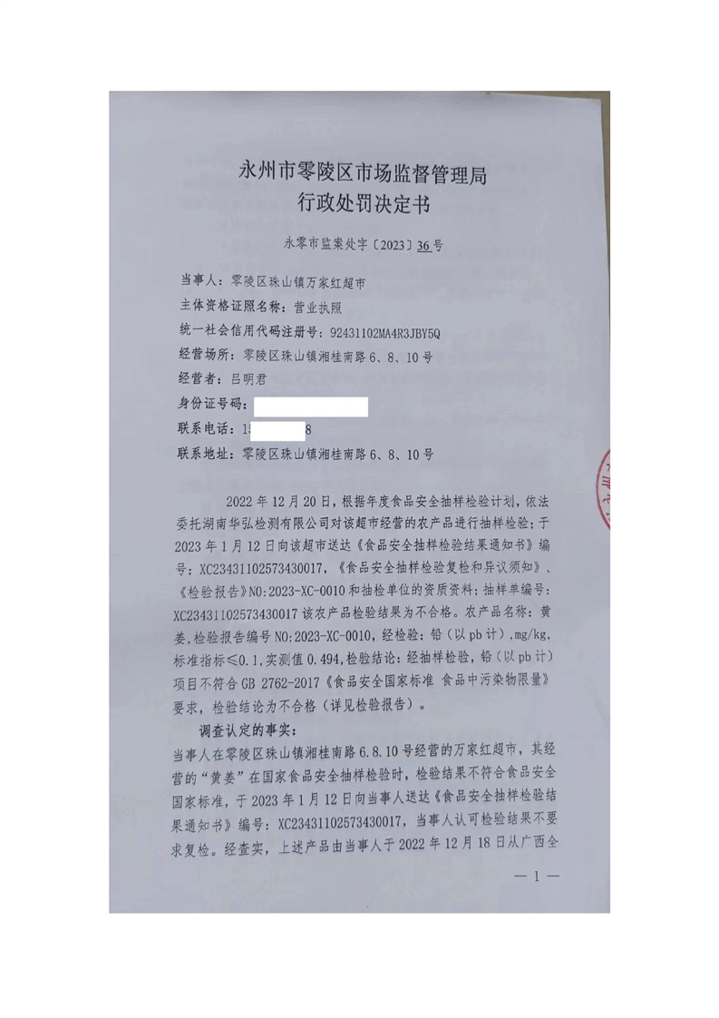 永州市零陵区市场监督管理局行政处罚决定书(永零市监案处字〔2023〕36号)