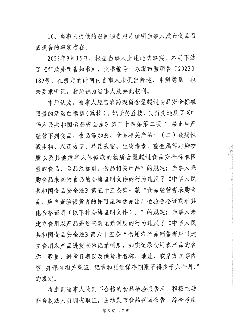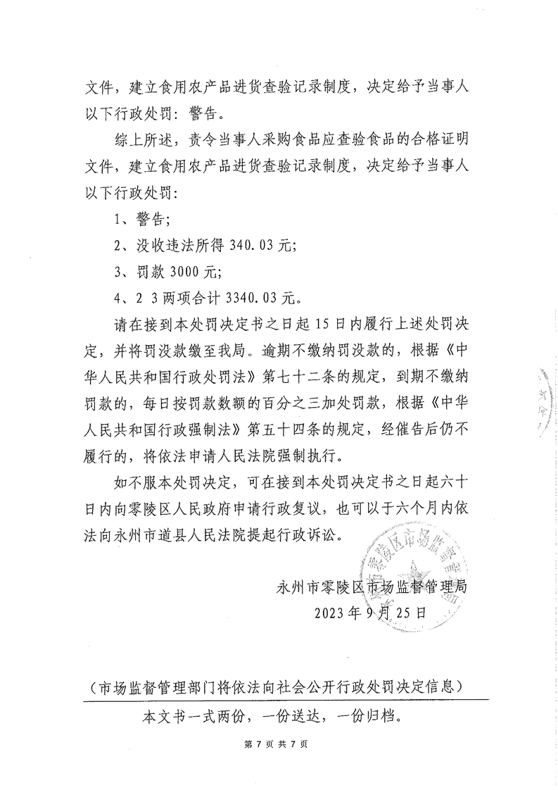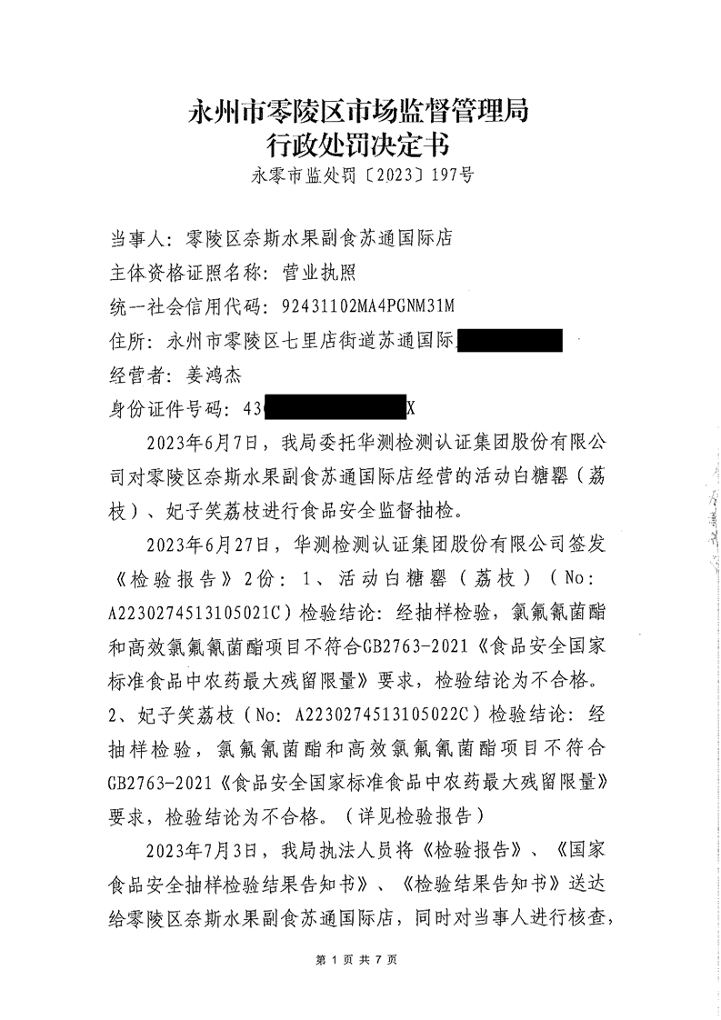 永州市零陵区市场监督管理局行政处罚决定书(永零市监处罚〔2023〕197号)