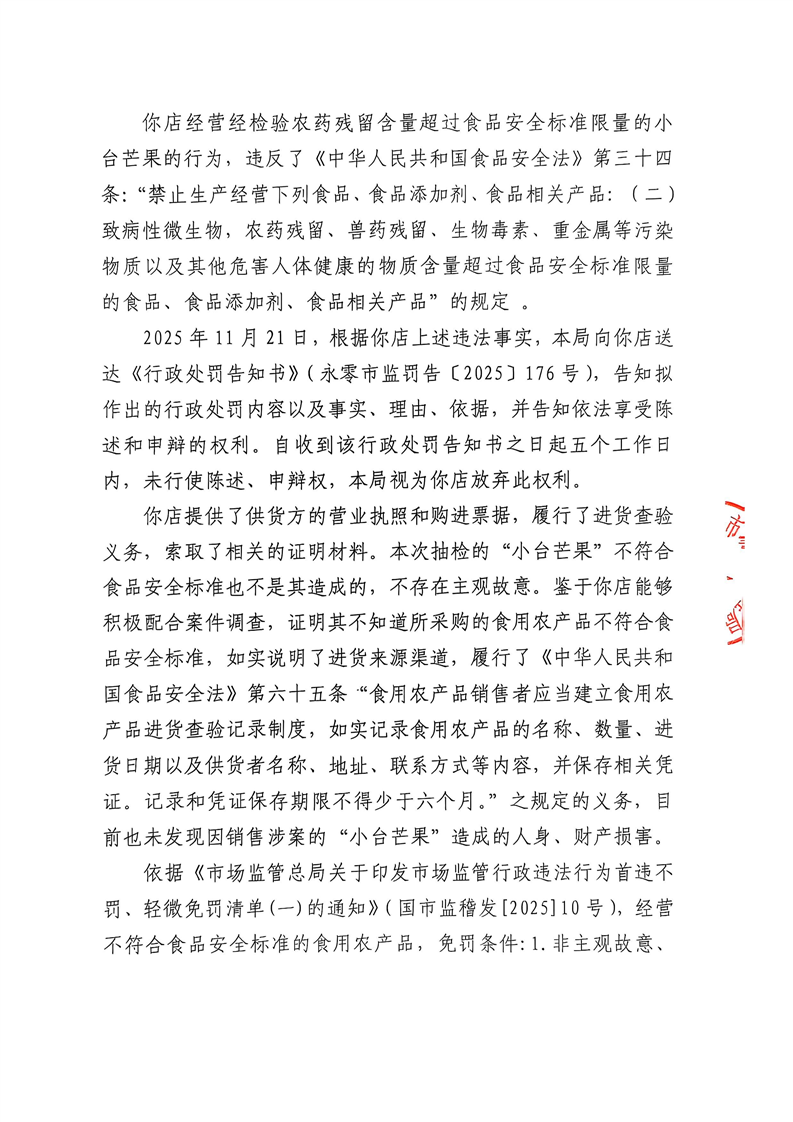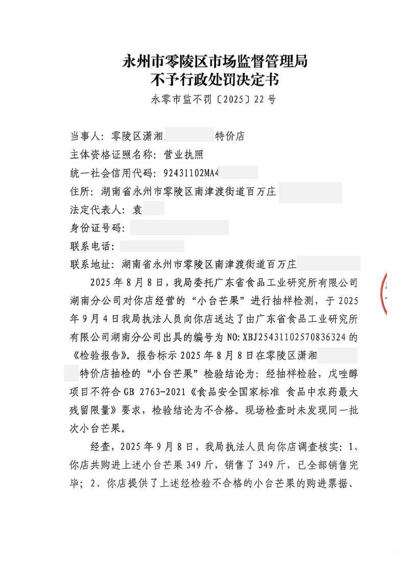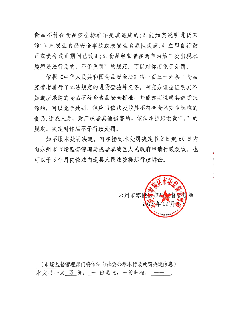 永州市零陵区市场监督管理局 不予行政处罚决定书(永零市监不罚〔2025〕22号)