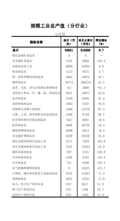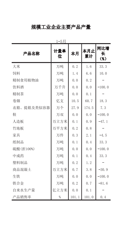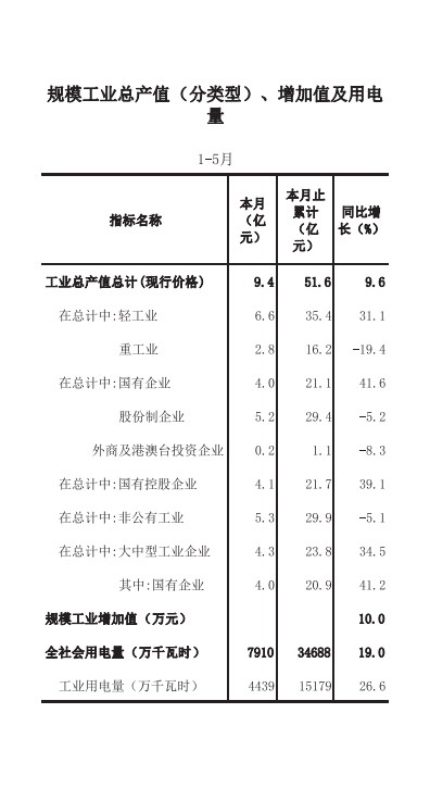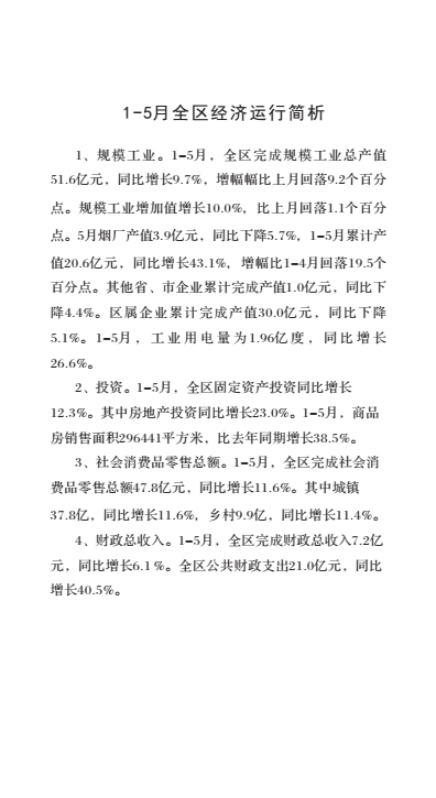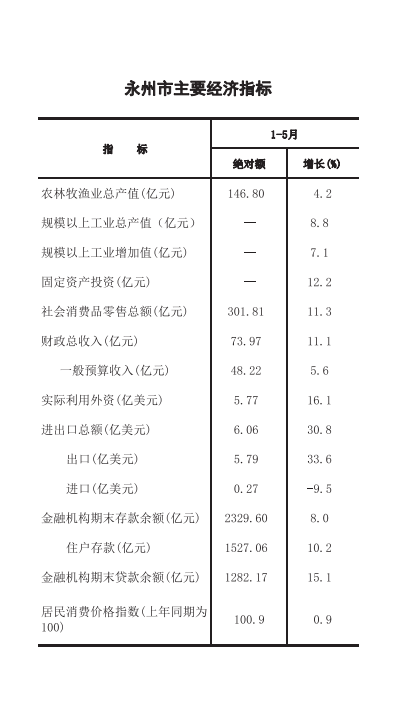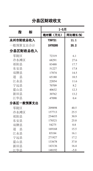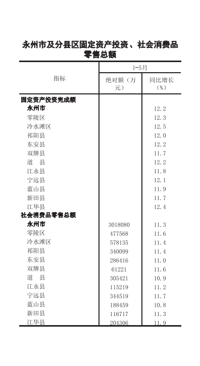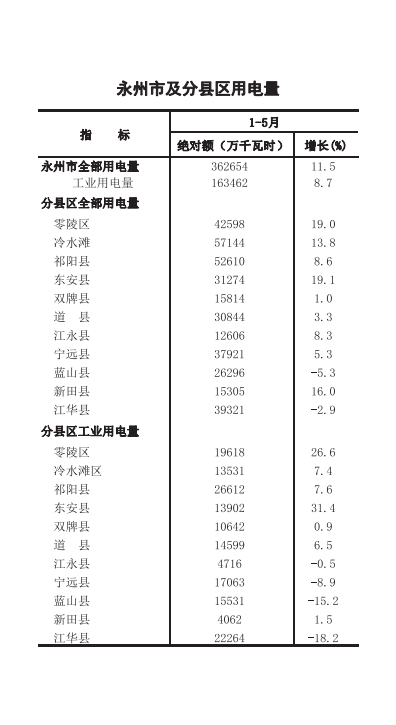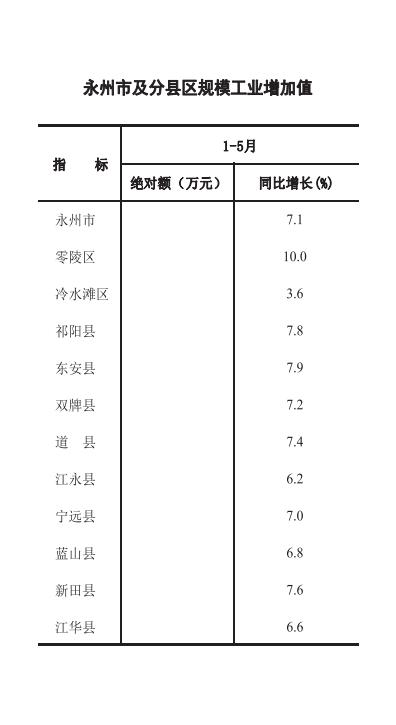 零陵区2018年1-5月经济信息月报