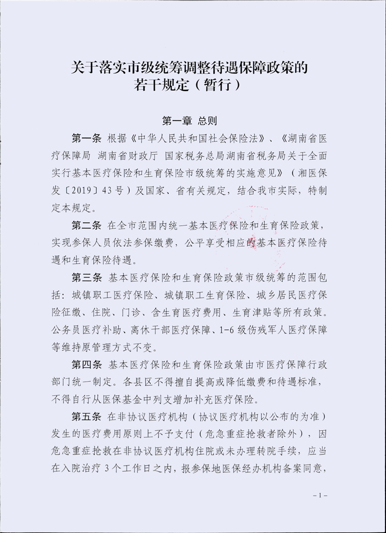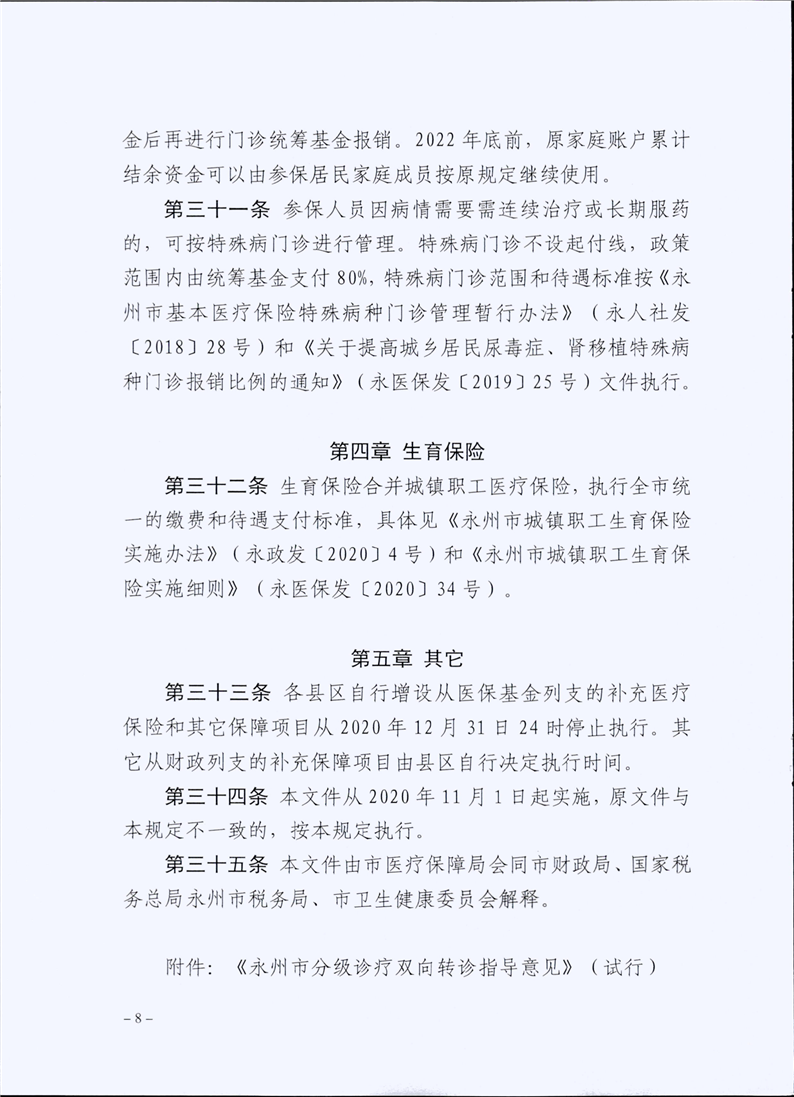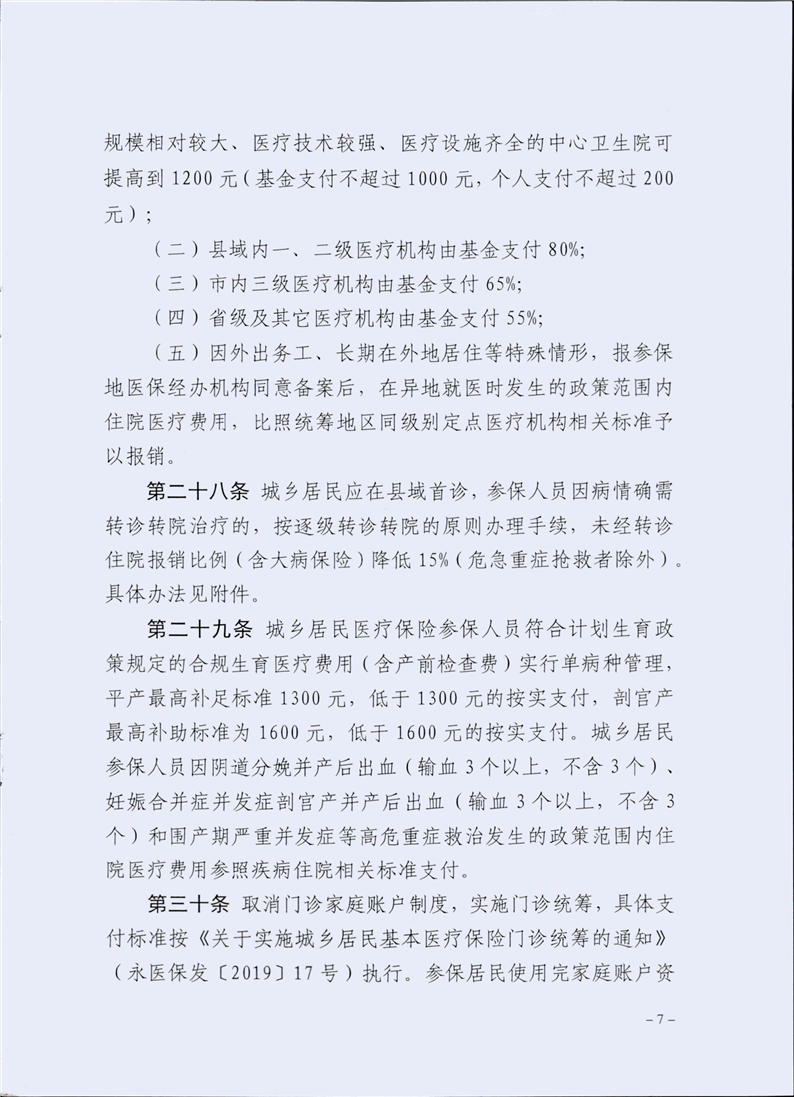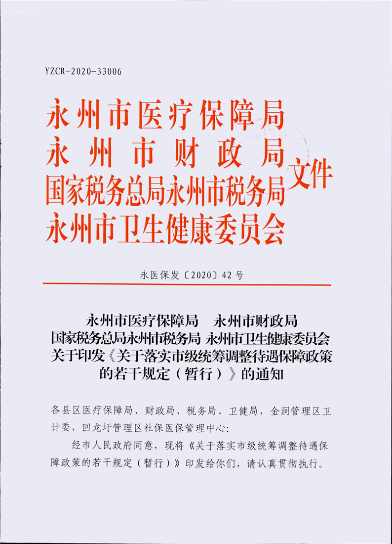 (永医保发〔2020〕42号)关于印发《关于落实市级统筹调整待遇保障政策的若干规定(暂行)》的通知