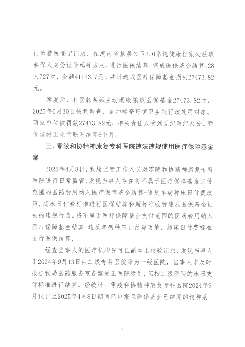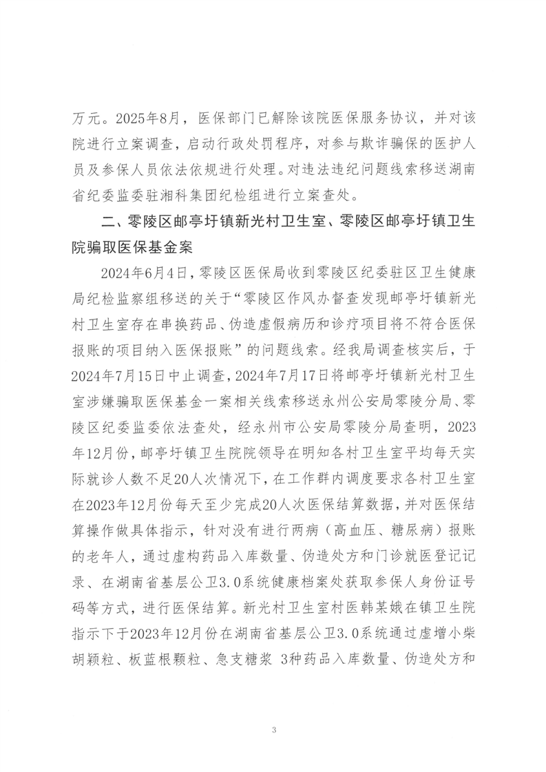 零陵区2025年公开曝光典型案例零陵区医疗保障局关于3起违法违规使用医保基金典型案例的通报