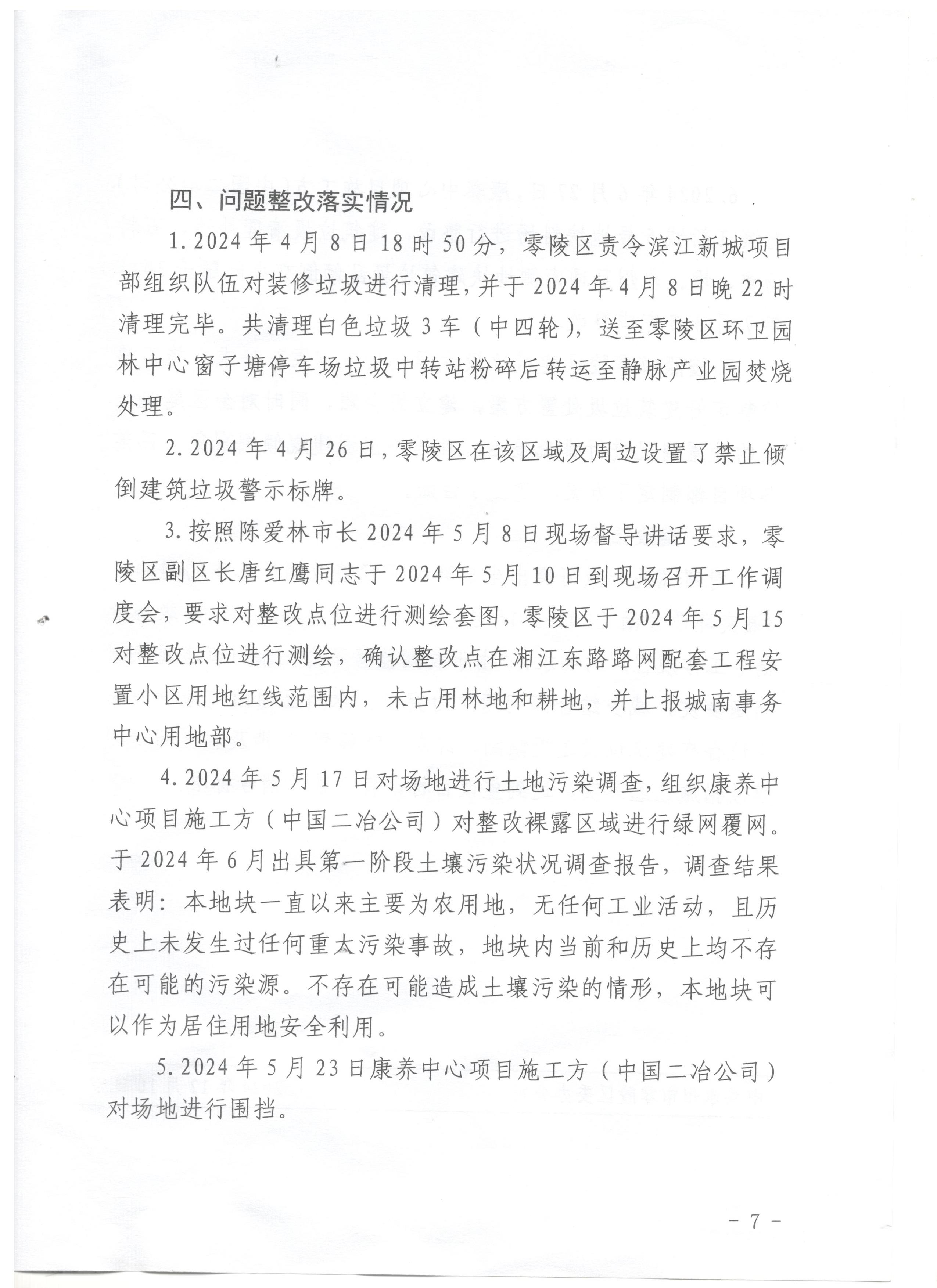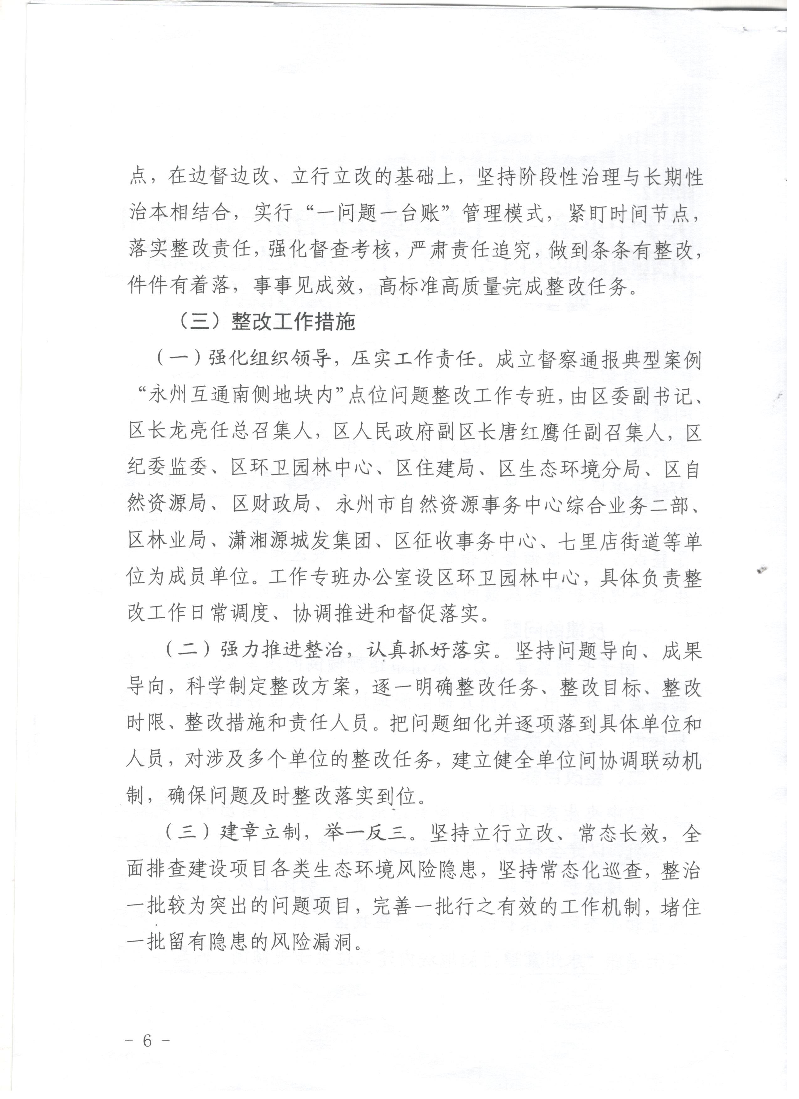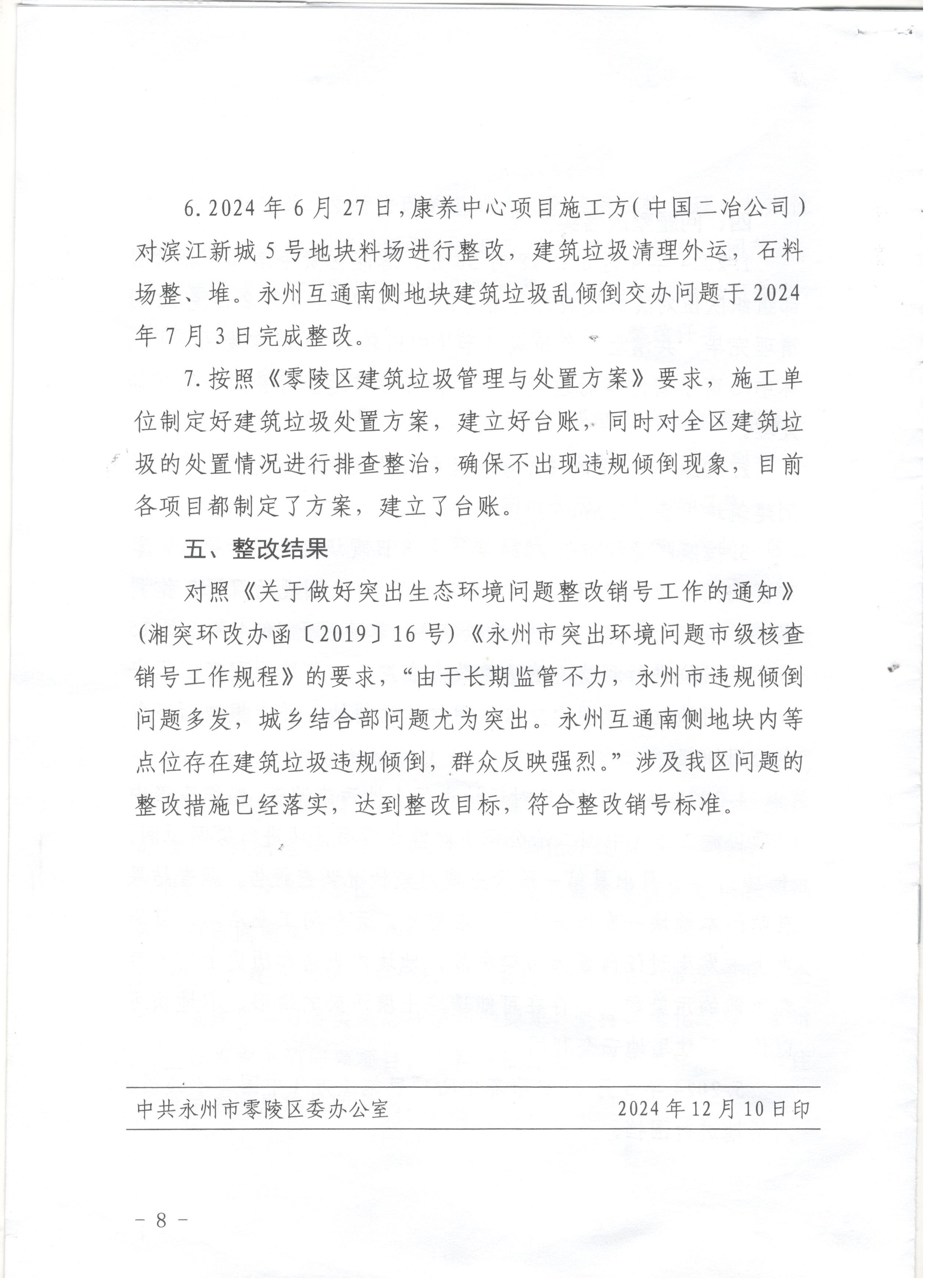 关于中央第三轮生态环境保护督察反馈“永州互通南侧地块内等单位存在建筑垃圾违规倾倒”典型案例整改销号的请示