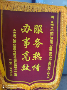 “感谢测绘窗口工作人员周末加班为我们办理业务,为零陵区政务中心工作人员的办事效率和服务态度点赞”3月27日,永州市万亿商业管理有限公司王先生将一面印有 “服务热情,办事高效”的锦旗送到永州市勘测事务中心驻零陵政务中心测绘窗口,感谢工作人员的快速审批和暖心服务。