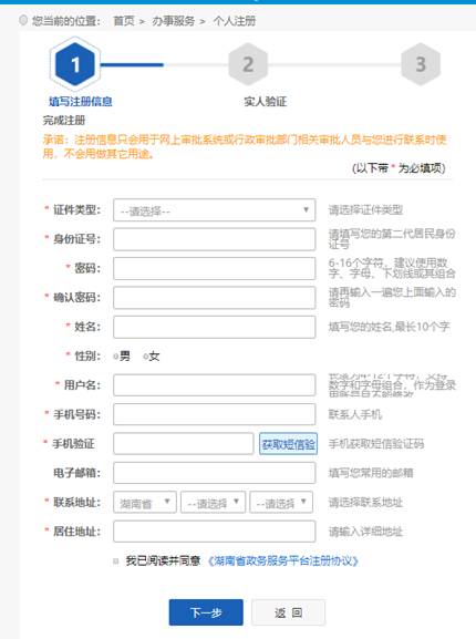 1.3、填写完成后勾选已阅读并同意,点击下一步按钮;