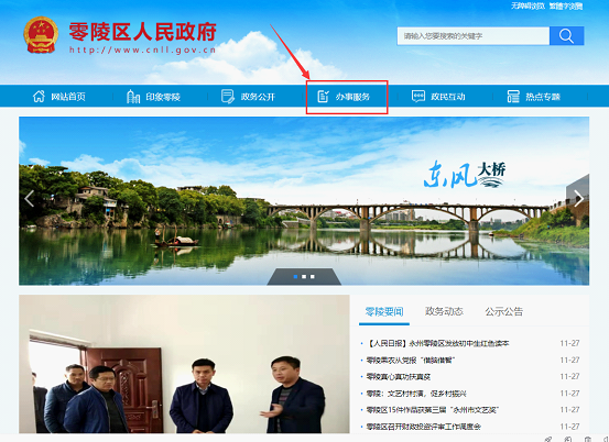 登录零陵区政务服务网上办事大厅地址:http://www.cnll.gov.cn/