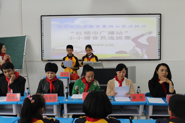 “红领巾广播站”是七里店校区宣传工作暨校园文化建设的一个亮点,在传播信息、营造浓厚育人氛围及培养播音人才方面发挥了不可替代的作用,受到了校内外的广泛好评。为了保质保量把新播音员选拔工作完成好,大队部制定了详尽的实施方案和细则,并在全校范围内进行了广泛的宣传和发动,吸引了65名同学报名。评委老师们按照既定的标准,确定了12位同学为“红领巾广播站”新任播音员。