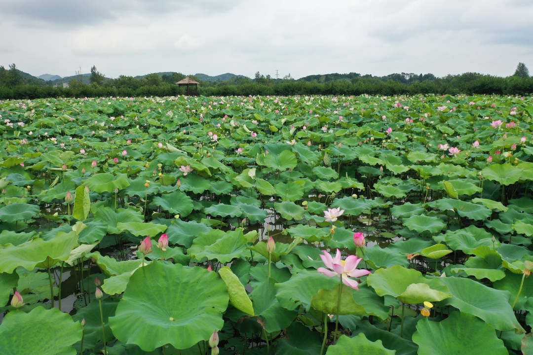 在这1000多亩的荷塘里,水上有莲花、莲子,水下有莲藕和小龙虾,这种“塘里种莲、莲下养虾、莲虾共生、循环共养”的绿色生态立体种养模式,形成了蓝天、白云、荷花、游客为一体的极美景观,亩产莲子300斤以上、小龙虾250斤以上,平均每亩收益超过6000元,为当地村民铺就了一条乡村振兴生态致富路。