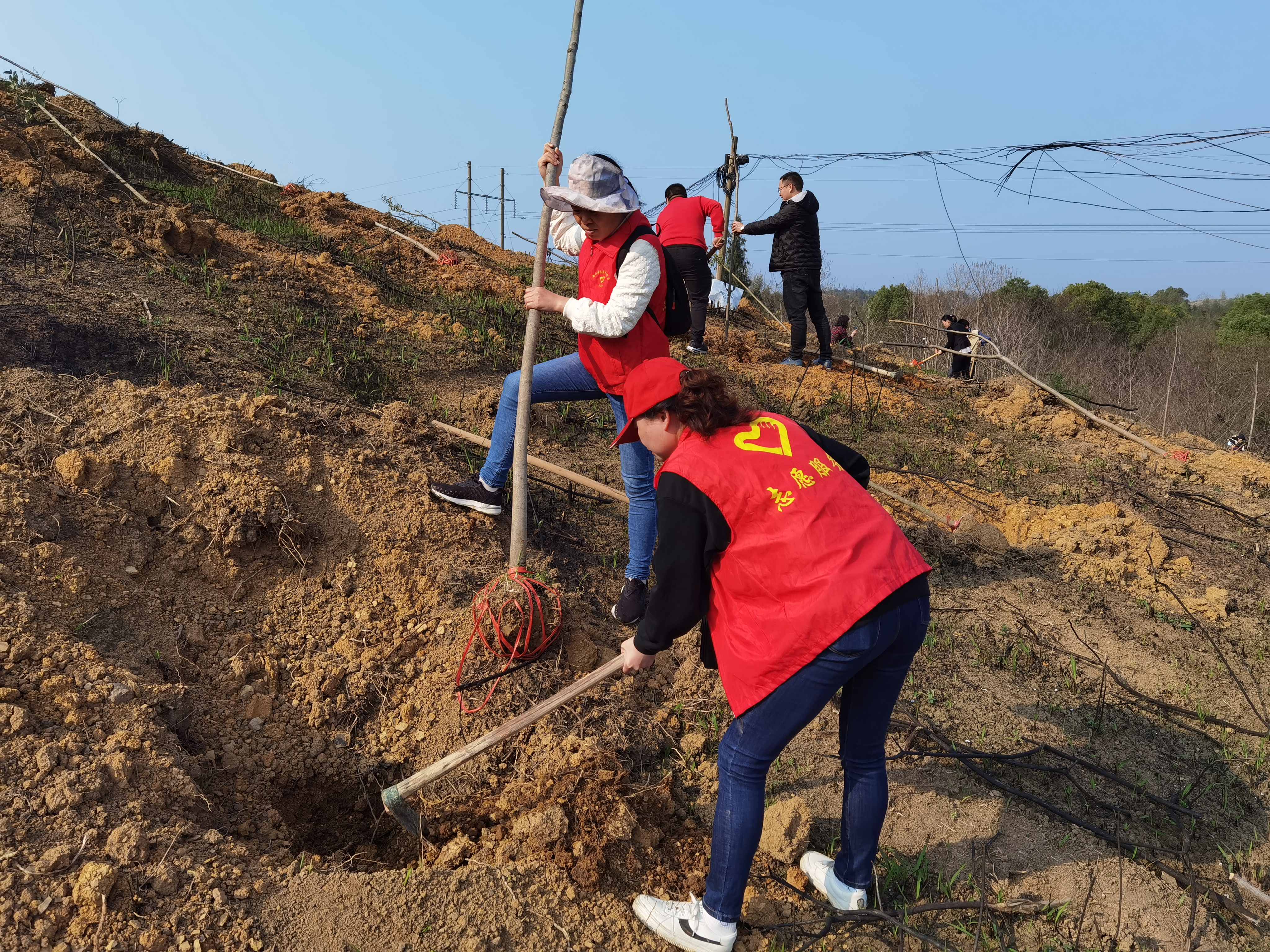 阳春三月,春暖花开。在植树节来临之际,冷水滩区医疗保障局组织干部职工到蔡市镇虾塘村、巴洲滩居委会邓家岭开展义务植树活动。植树现场,工作人员分工协作,扶苗正苗、挥锹铲土、填平树坑、夯实新土、提水浇树、培土围堰。在大家齐心协作下,此次义务植树活动共栽树苗55株,为春日里的蔡市镇增添了一抹动人的新绿。 树聚成林,人聚成事。大家纷纷表示,植树造林是一项功在当代、利在千秋的大事,开展义务植树活动不仅美化环境,同时通过劳动,增强组织凝聚力,树立“爱绿、植绿、护绿”生态文明意识力量。