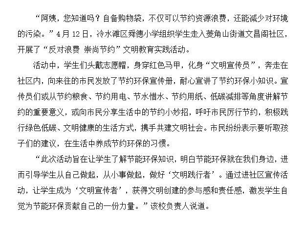 冷水滩区舜德小学:节能宣传进社区 争做“文明宣传员”