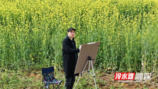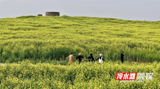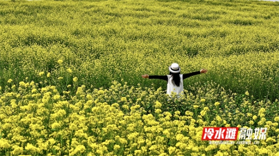 在冷水滩区伊塘镇千亩油菜基地,一架观光直升机腾空而起,俯瞰之下千亩油菜花海与星罗棋布的田园村落构成一幅诗意画卷。