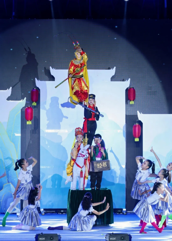 集体节目儿童组原创非遗舞蹈《扎个故事乐哈哈》荣获儿童组金奖,《扎个故事乐哈哈》创作灵感来自冷水滩区省级非遗项目“黄阳司扎故事”。扎故事是冷水滩区黄阳司镇独有的传统民俗,有着深厚的文化底蕴和独特的艺术魅力。此次,冷水滩区黄阳司扎故事艺术团将这一传统民俗与舞蹈艺术深度融合,为观众带来了一场震撼的视觉盛宴。舞台上,孩子们动作刚柔相济,时而如火焰般热烈奔放,将扎故事的精髓展现得淋漓尽致;时而又轻盈灵动,仿佛在诉说着古老的故事。每一个眼神、每一个手势都饱含着对传统文化的热爱与传承,让观众们深刻感受到了非遗文化的博大精深和无穷魅力。