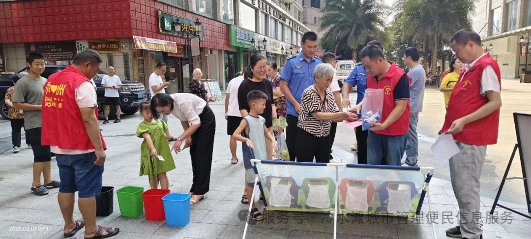 在滨江豪园小区内,“四分类”投放小游戏前人头攒动。志愿者通过“垃圾卡片分类赛”“答题赢环保袋”等互动游戏,让居民亲自体验生活垃圾分类。通过发放《冷水滩区建筑垃圾处置告知书》《房屋建筑装饰装修典型违法案例》《生活垃圾分类宣传指导手册》《冷水滩中心城区市容秩序管理告知书》《燃气管家进万家》等宣传资料,向居民深入讲解相关政策和知识。