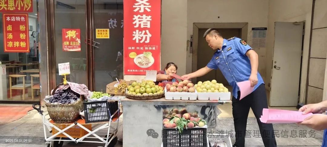 最后区城管执法局与区环卫和园林绿化服务中心、街道社区等单位组成“市容秩序文明劝导小分队”,针对占道经营、车辆乱停乱放等问题开展文明劝导。